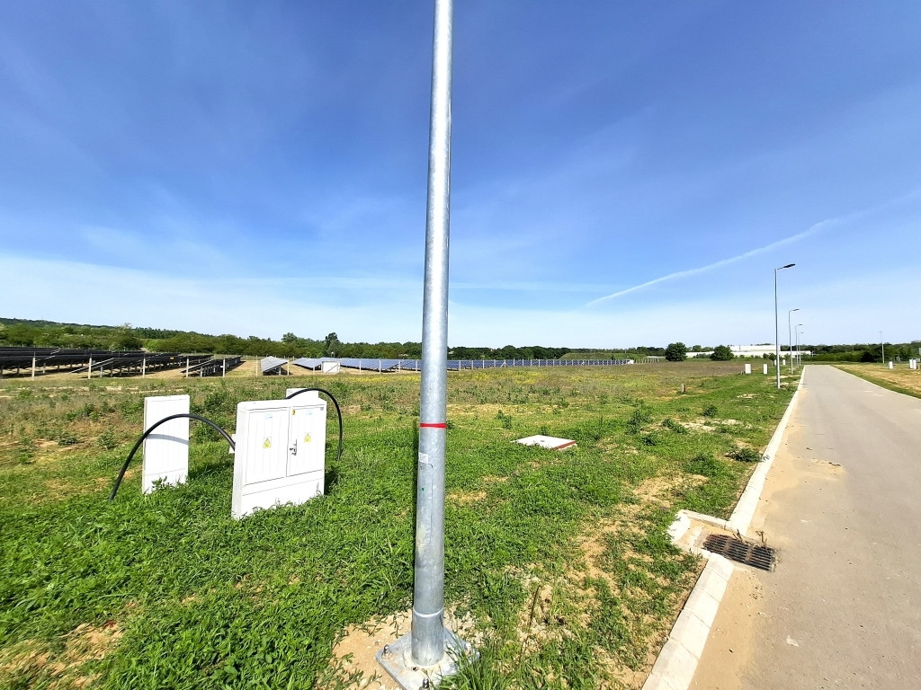 Eladó telkeink között szerepel egy közel 3 ha méretű (pontos alapterület: 29446 m2), speciális elhelyezkedésű és formájú ipari ingatlan, mely esetében a maximált épületmagasság 16 méter. Itt legfeljebb 22 méteres lejtő felé néző homlokzatmagassággal (utcai is) is elhelyezhető épület, de ebben az esetben az oldalkert legkisebb mérete min. 8 méter.Az ingatlanokon a környezetre jelentős hatást nem gyakorló, legfeljebb 15 MW teljesítményű napelemes erőmű elhelyezhető. Technológiai műtárgy legmagasabb pontja legfeljebb 30 méter lehet.