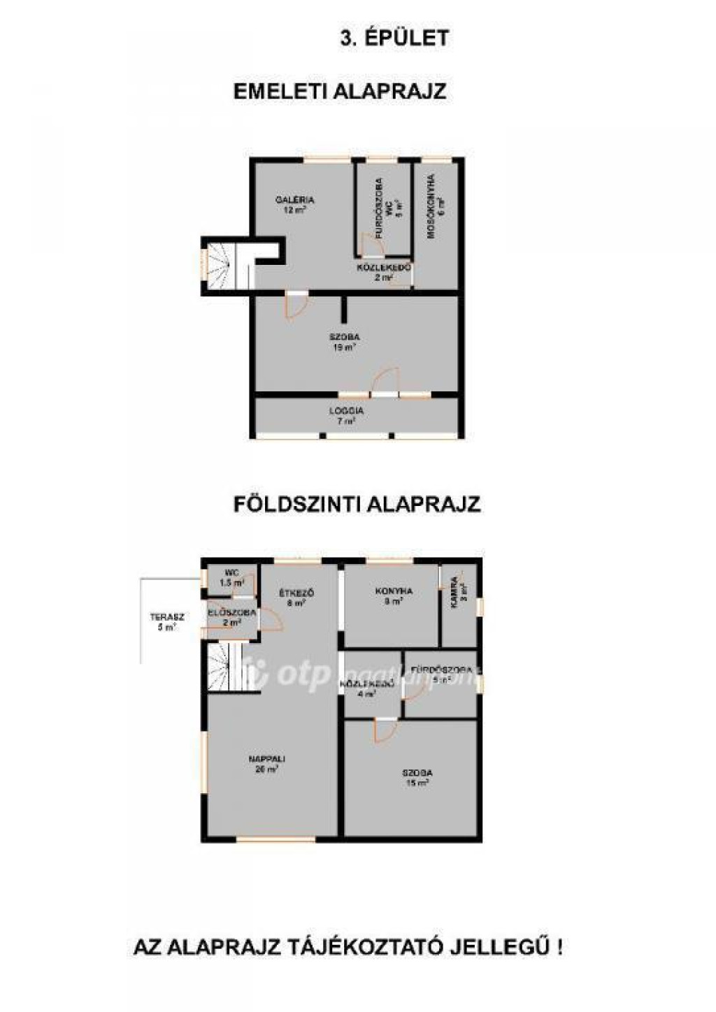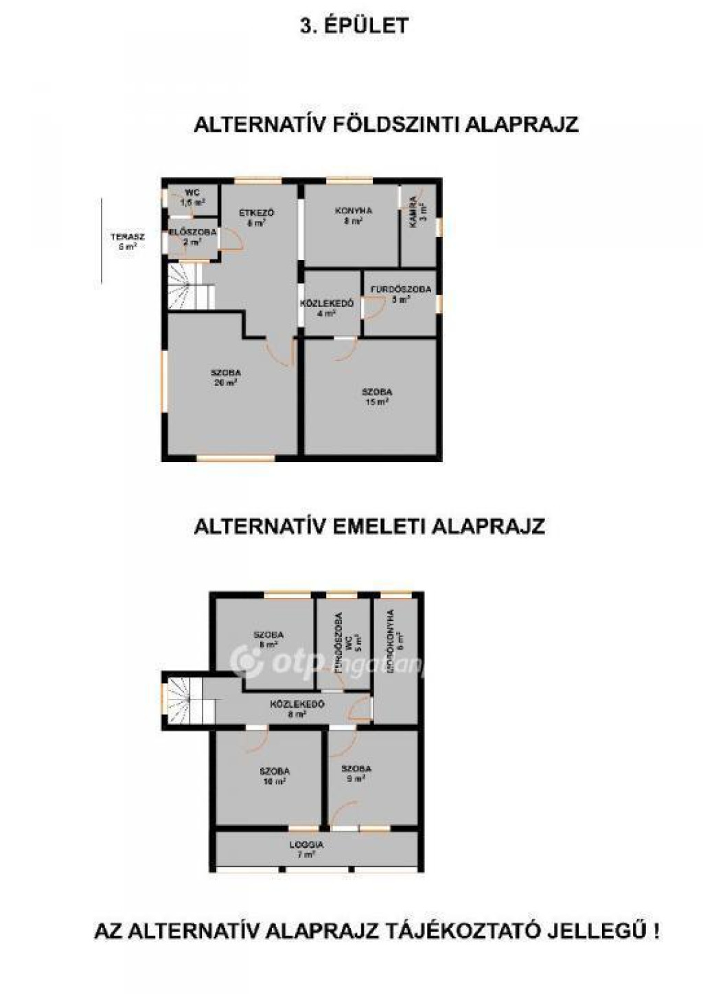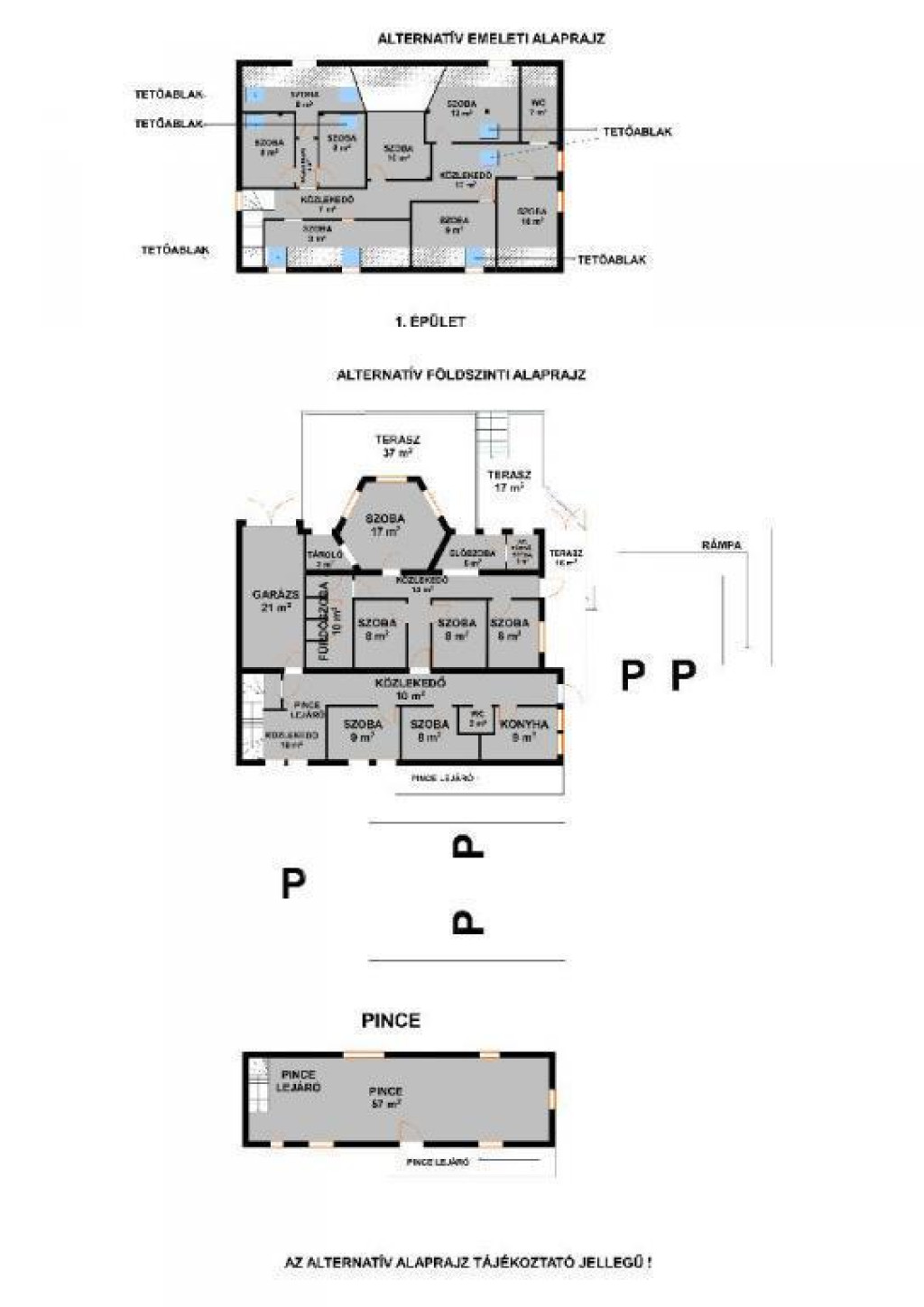1. Épület - több mint 360 m2 alapterület, 3 szintes főépület: