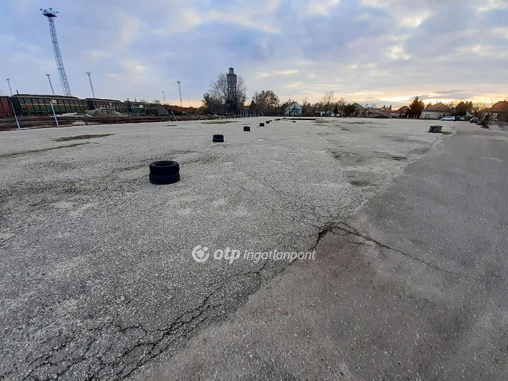 Eladó Szentes belterületén egy sarki, kerítéssel körbekerített, két nagykapus ipari ingatlan, melynek telekmérete 8547 m2. A terület 80%-ban nagy teherbírású, szilárd burkolattal borított, két épülettel rendelkező, ezen kívül beépíthető. Női és férfi WC, zuhanyzó, öltöző és iroda rendelkezésre áll. Közvetlen a telekhatár mellett vasúti pálya található. 3x40A, 3 fázis és a víz bevezetve, vonalas telefon telken belül, gáz az utcában, a szennyvíznek derítő. A szilárd burkolaton, több mint egy tucat ú.n. csatorna összefolyó vezeti el a csapadékvizet.