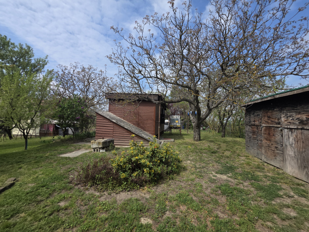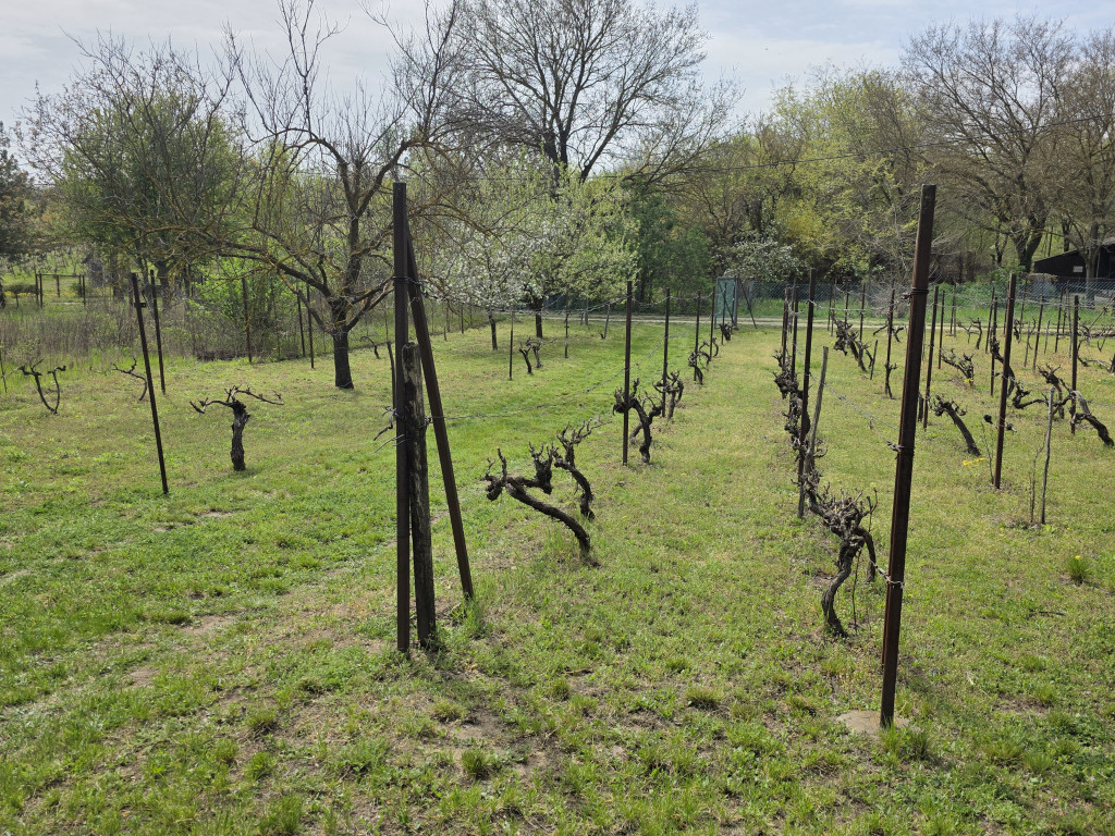 Udvarán bőven termő gyümölcsfák (alma, szilva, cseresznye, meggy, dió) és sok tőke szőlő burjánzik. A telek hátsó felében a felépítmény mögött esővíz gyűjtő ciszterna, kb. 10 m2-es fa szerkezetű tároló, kerti wc kapott helyet.