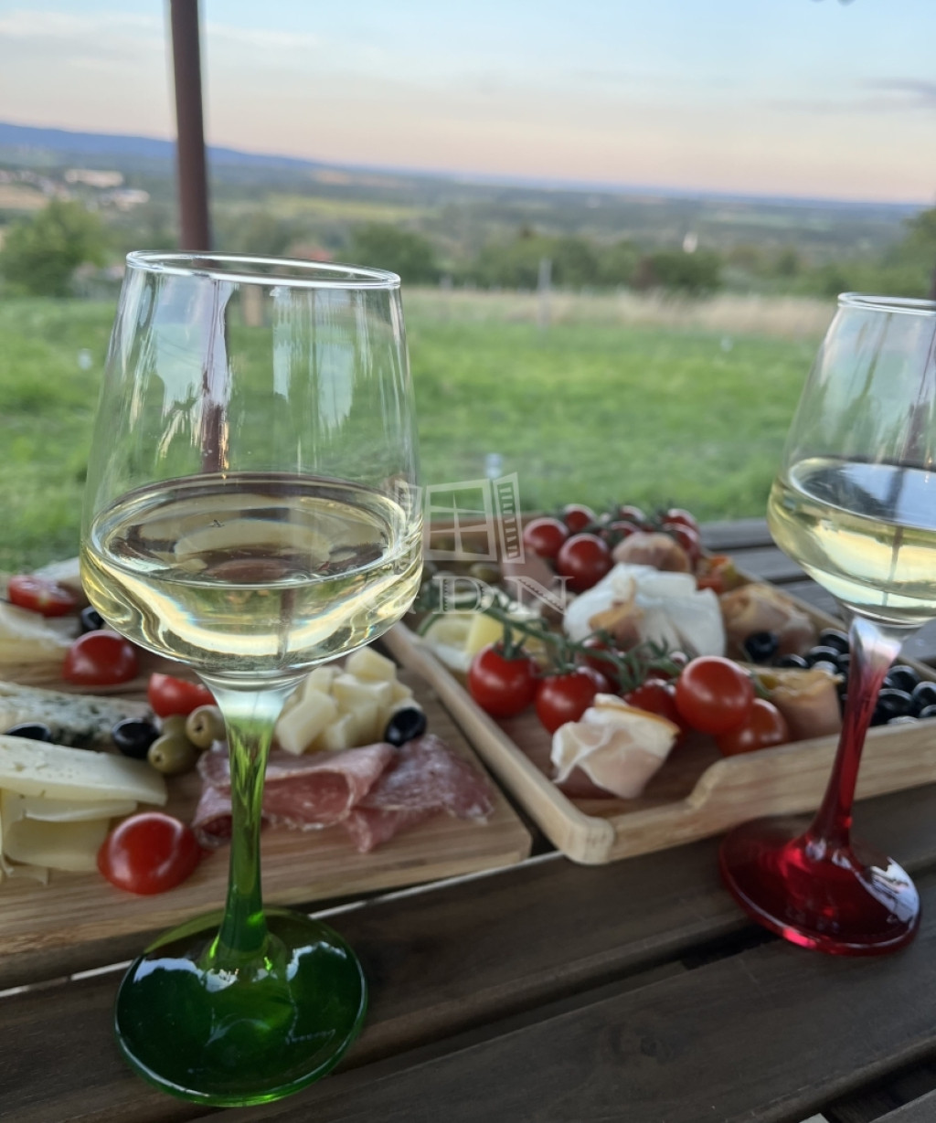 Az aszfaltos út mentén lévő telken található egy felújítandó kb. 20 m2-es ház (gazdasági épület), amelybe a víz és villany már be van vezetve. Az épület mellett 3 m3-es szennyvíztartály került elhelyezésre. A telek legfelső részén különböző fák (alma, körte, szilva, kajszi, cseresznye, meggy mellett 3 nagyobb diófa és 8 db 2-3 éve telepített mandulafa) vannak telepítve.