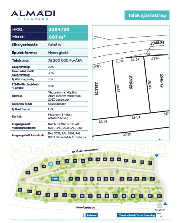 Balatonalmádiban egyedülállóként kialakított lakóparkban kínálunk különböző méretű építési telkeket megvételre.