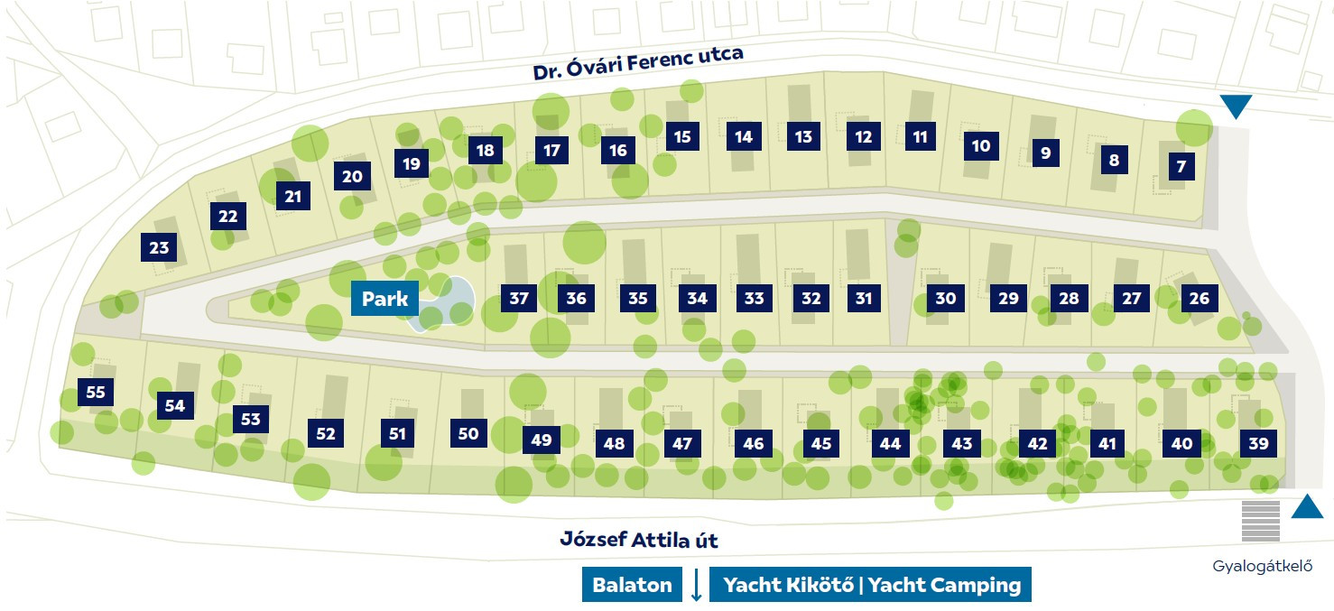 A két utcáról is megközelíthető Villa Park elhelyezkedése rendkívül kedvező. Nem zavaró közelségben, de mégis könnyen megközelíthető távolságban található a településközpont, bevásárlási lehetőség, tömegközlekedés…