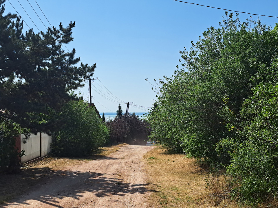 Építési telek a hegy tetején, ahonnan a felső szintről gyönyörű balatoni kilátás nyílik. A környezet csendes, madárdalos, mégis a strand, boltok, vasút és buszmegálló mindössze 1,5 km-re található. A közelben nyáron kulturális, zenei és gasztronómiai programok várják a pihenni vágyókat.