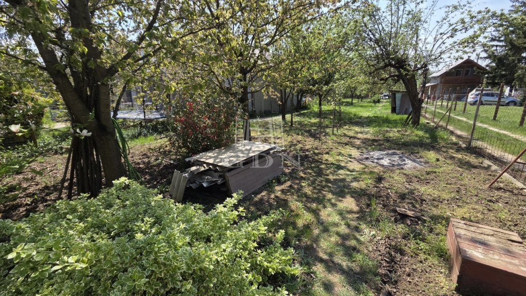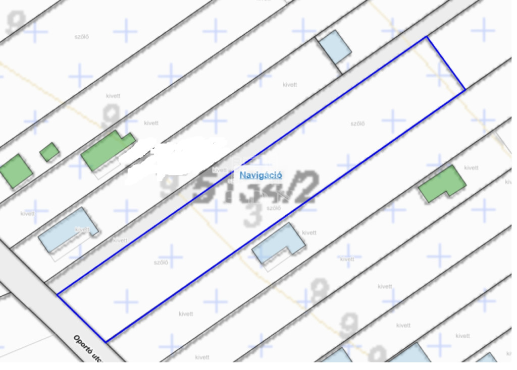 Aszfaltos utcában kínálunk eladásra egy hosszúkás (utcafront 12 m) gyümölcsfákkal és gazdasági épülettel rendelkező 832 m2-es csendes hobby telket.