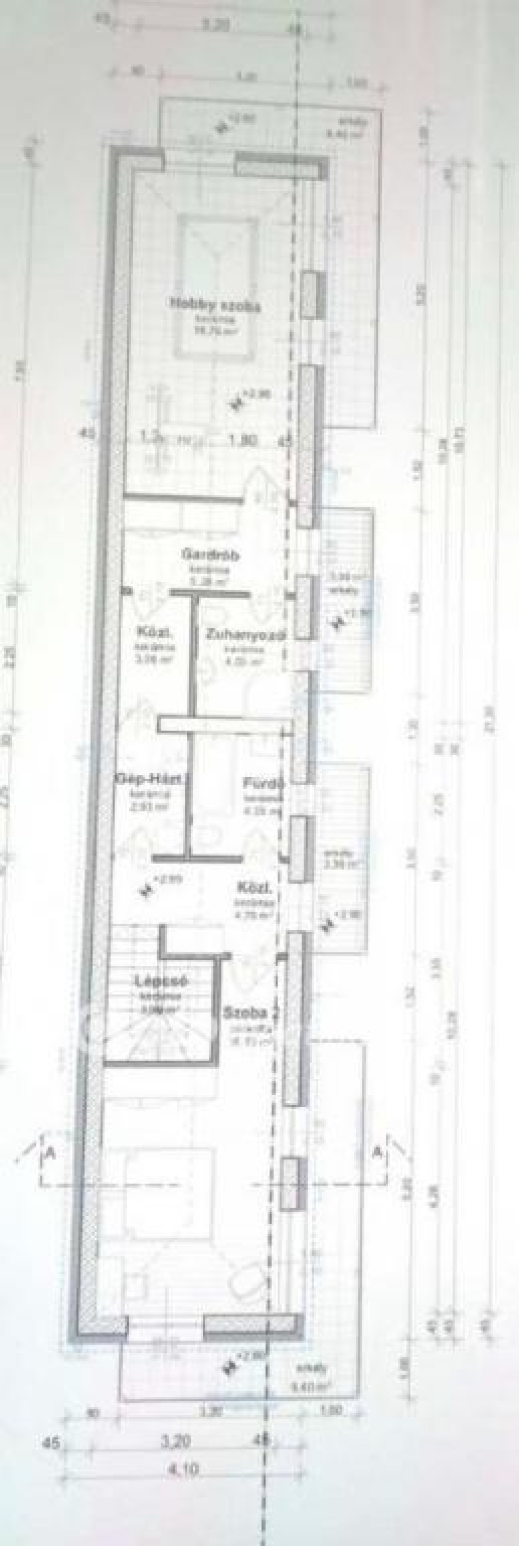 A telek szélessége 8,4 méter, hossza 42,51 méter. A tervezett családi ház lakóingatlan a telek egyedi méreteit maximálisan kihasználva került megtervezésre és engedélyeztetve.
