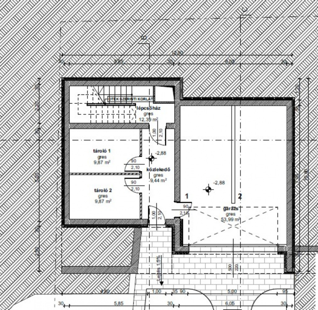 Érvényes építési engedély: 420 m²-es, kétlakásos, több szintes társasházra