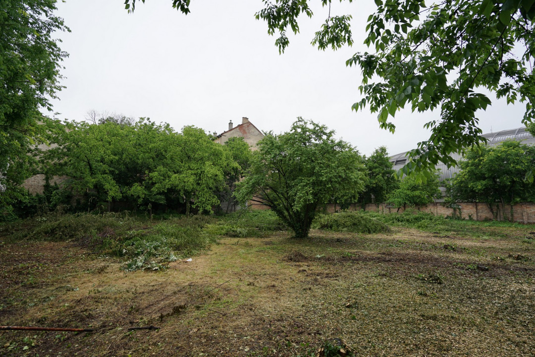 A telek jelenleg kerítéssel elzárt üres földterület. Kedvező formájú, körbe kerített sík saroktelek, nagyvárosias, zártsorú keretes beépítésű lakóövezetben.