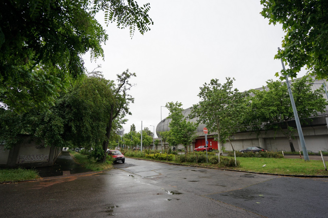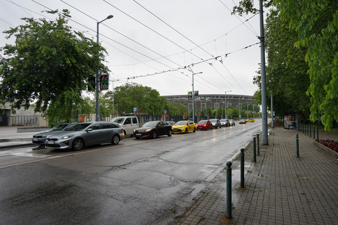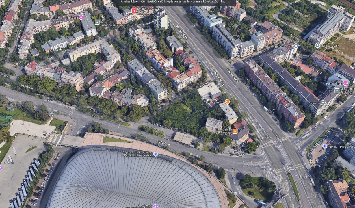 – Puskás és Papp László sportarénák az utca túloldalán,