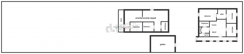 A telken két téglaépítésű ház található, 70-70 m² alapterülettel, mindkettő 1+2 fél szobás, felújítandó.