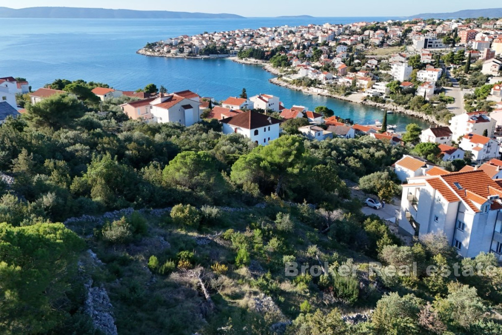 Building plot in a prime location, approximately 200 meters from the sea, for sale. The plot is rectangular in shape and is located on the south side of the island of Čiovo. The plot size is 640 m² and is located in a mixed zone. There is a private access road next to the plot. All necessary infrastructure is located in the immediate vicinity of the plot. There is a beach with crystal clear sea nearby, making the plot an excellent choice for building a villa or apartment building. BROKER REFERENCE ID:2035/195