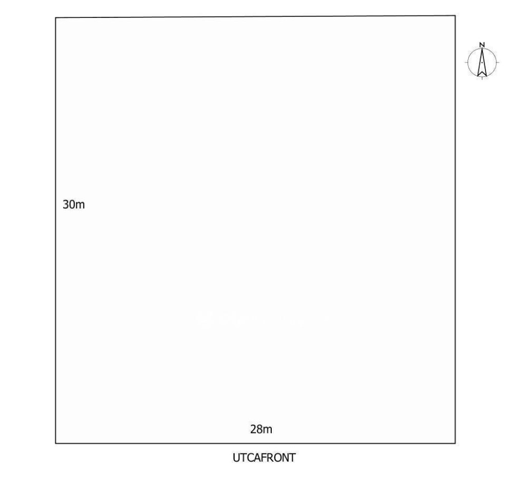 A 888m2-es telek 28m széles és 30m hosszú, rendkívül jó adottságú.