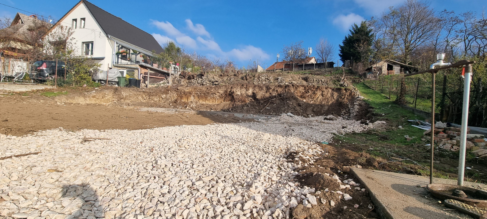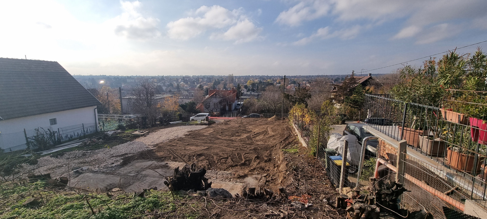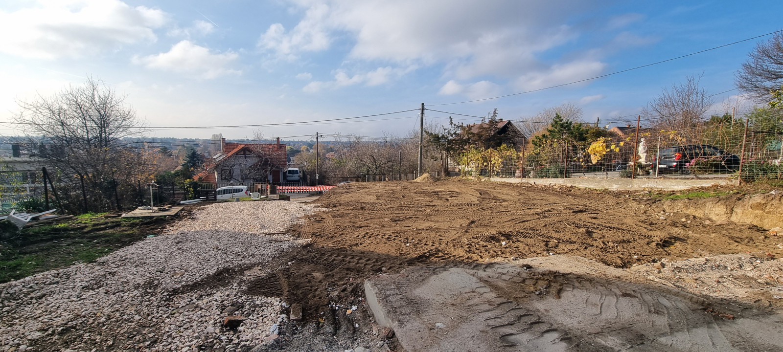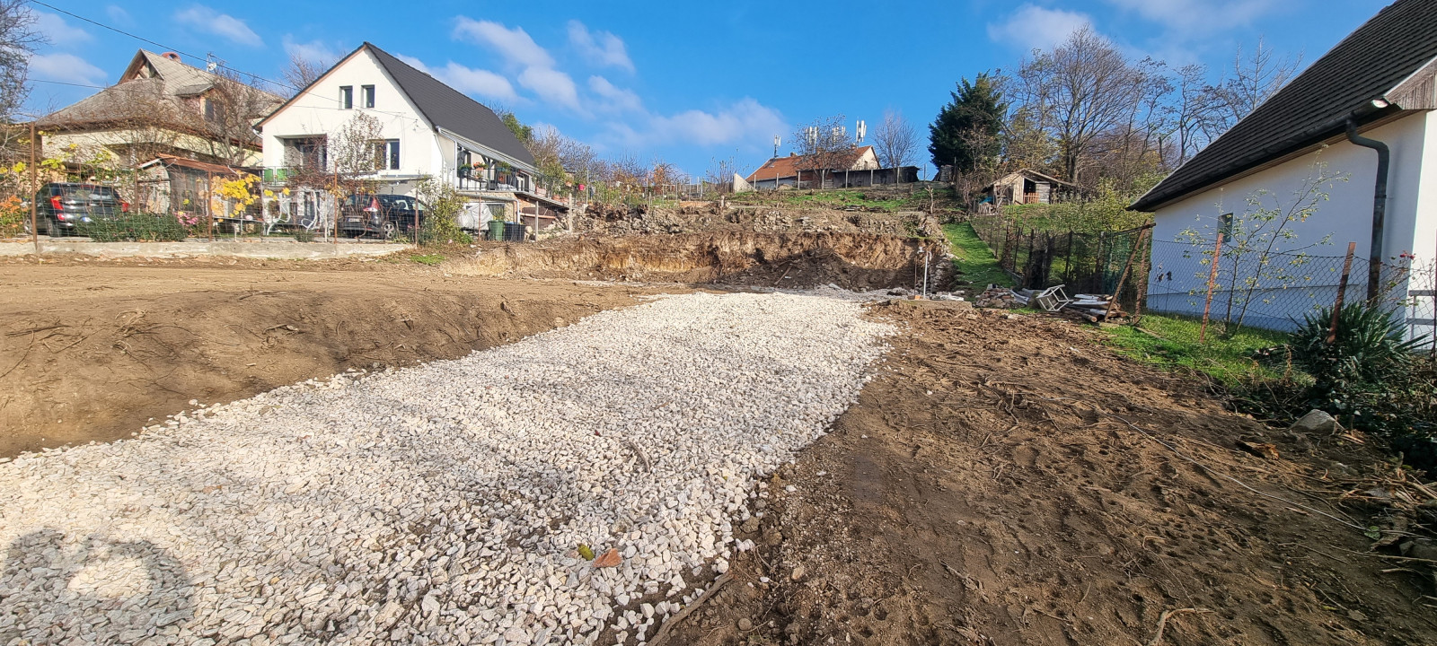 A telekről egy régebbi házat teljesen elbontottak és az építés helyének tereprendezését is elvégezték. Az építési forgalom számára szükséges szervízutat murvával terítették, hogy az anyagok szállítása zökkenőmentes történhessen.