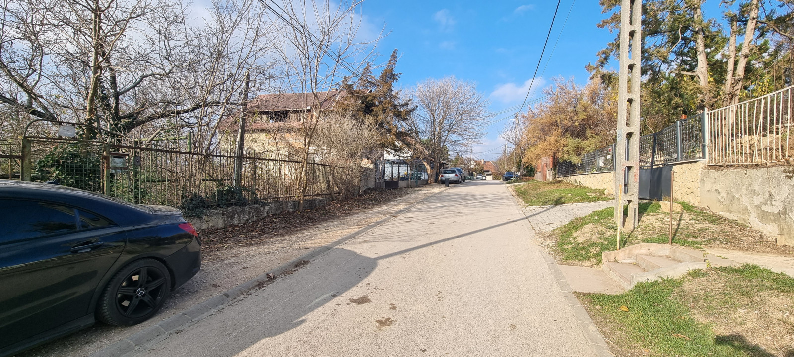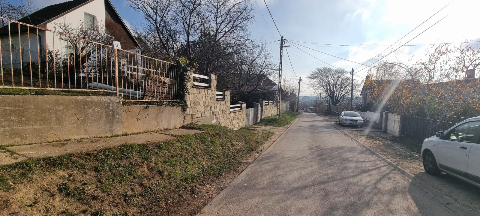 A telek 980 m2, az utca felől lépcsőzetesen emelkedő, délnyugati fekvésű domboldalban található, város felett elterülő kilátással. Közművek közül a villany, víz és a csatorna bevezetésre került. Gáz, internet és kábel TV szolgáltatás az utcából beköthető.