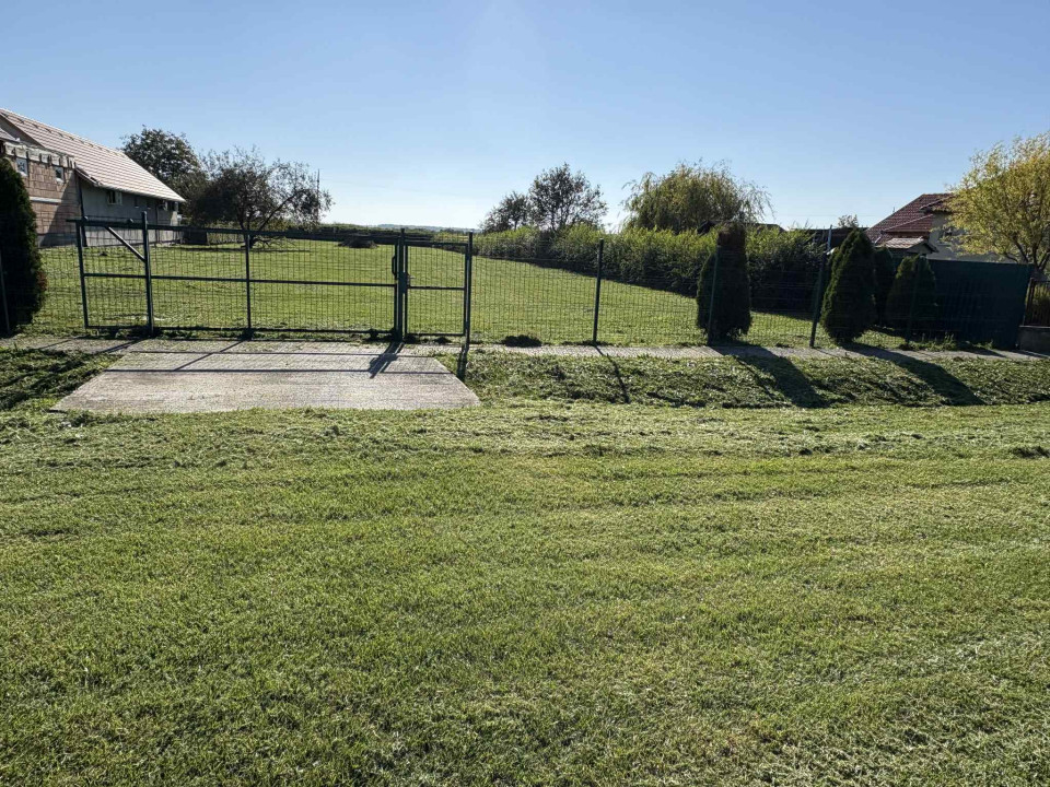 A sík, gondozott telek minden oldalról jó minőségű kerítéssel védett, a megközelítést új beton híd biztosítja.