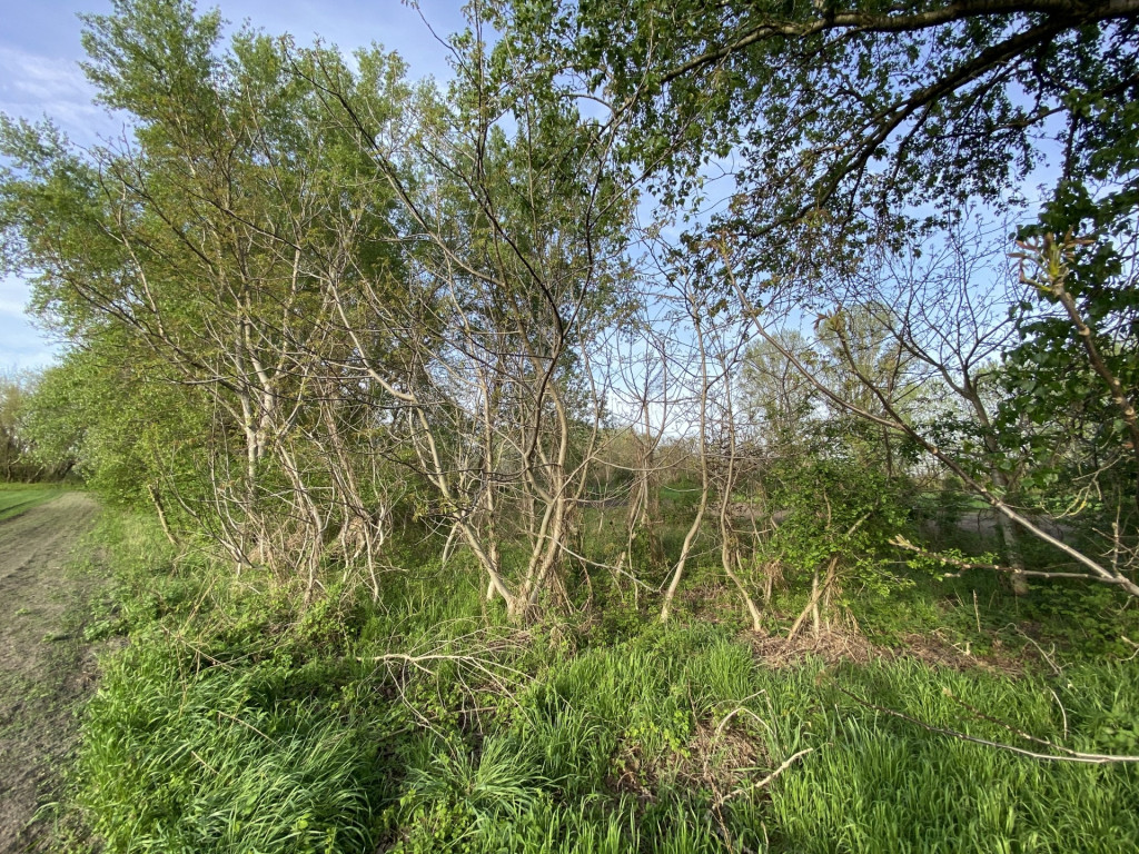 Az eladó földterülettel szemben víkend házak helyezkednek el.
