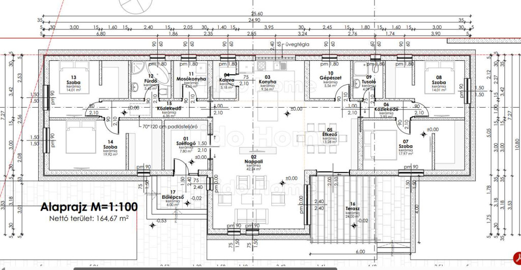-A tervrajz 160 m2 családi ház + garázs és tárolónak tervezve