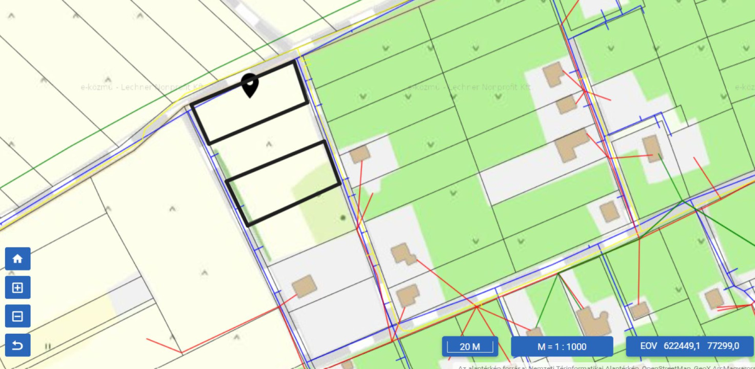 (A két telek között egy harmadik telek található más tulajdonossal, amely külön is megvásárolható.)