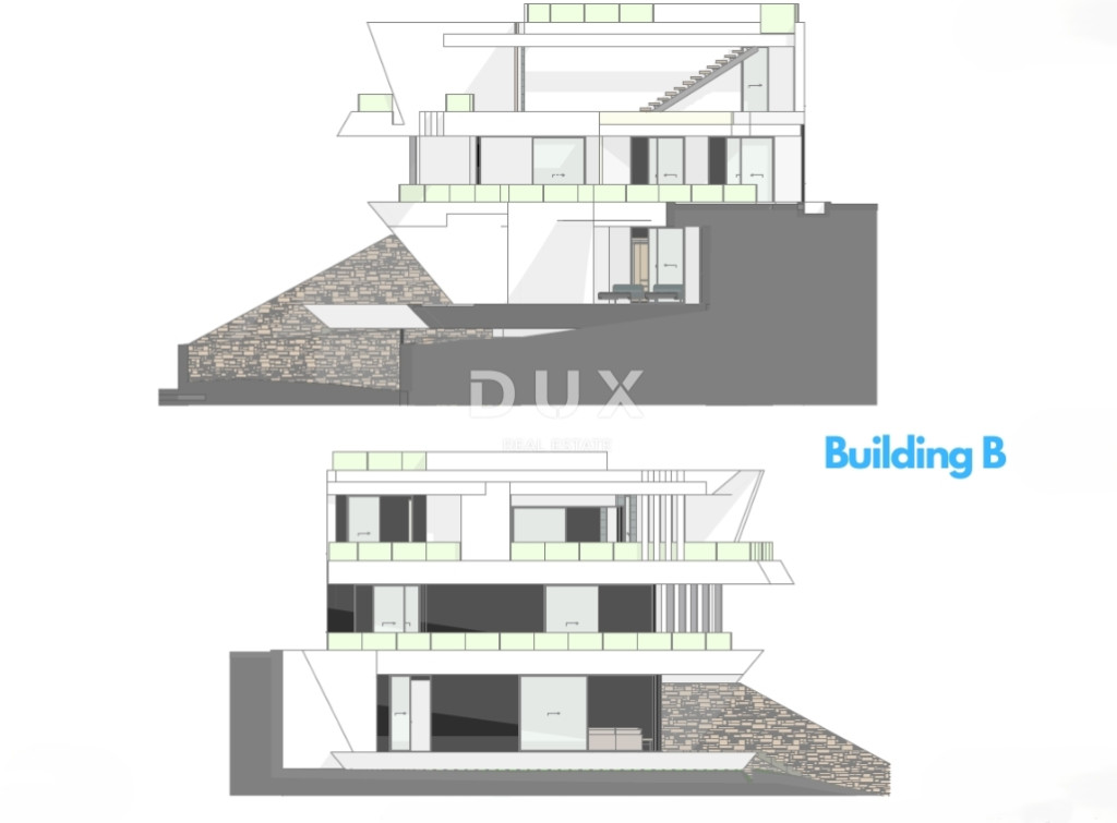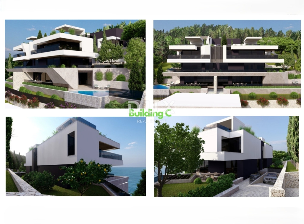 OPATIJA, KÖZPONT - új - 3 építési telek 18 luxuslakás építésére, a központ feletti legfelső szinten