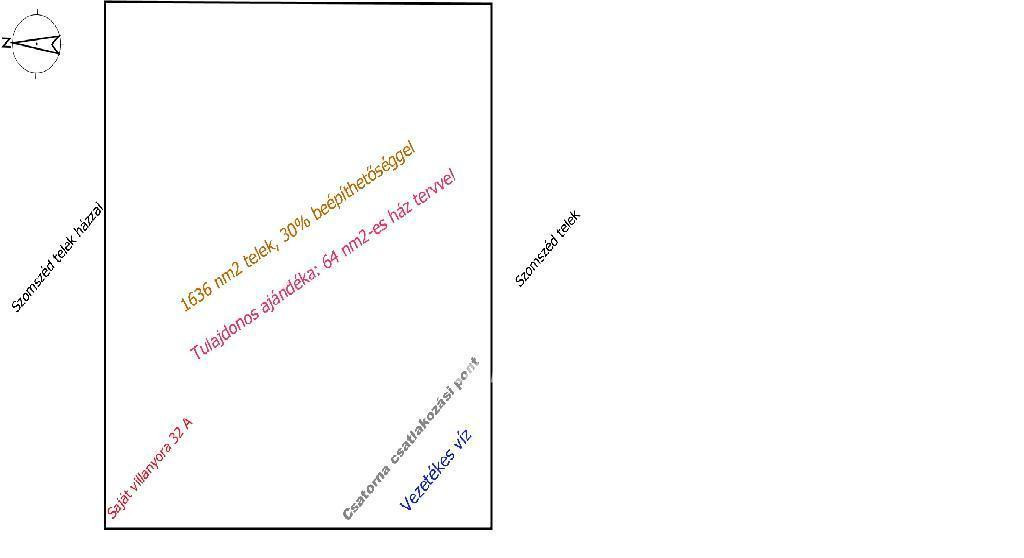 * a közművek (vezetékes víz, csatorna, 32 A áram) azonnal használatba vehetők a telken belül.