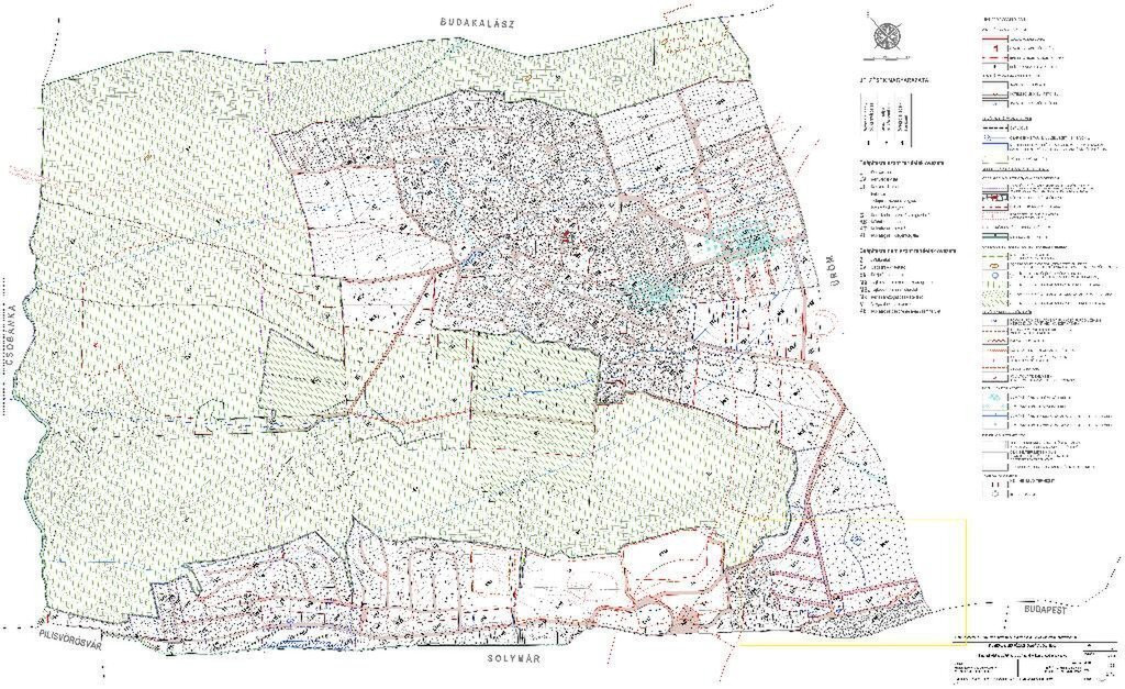 A telek alsóbb részére (alaprajzon nincs is jelölve) az önkormányzat igényt tart, mely díja az új tulajdonost illeti meg.