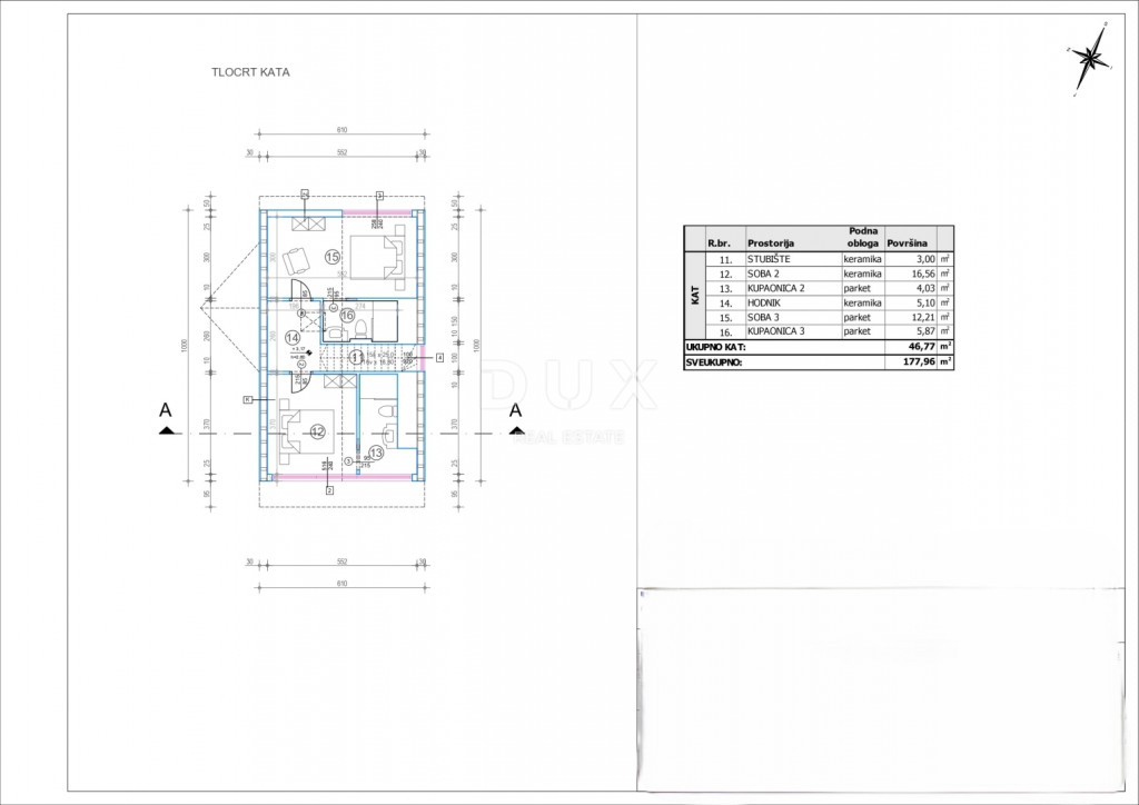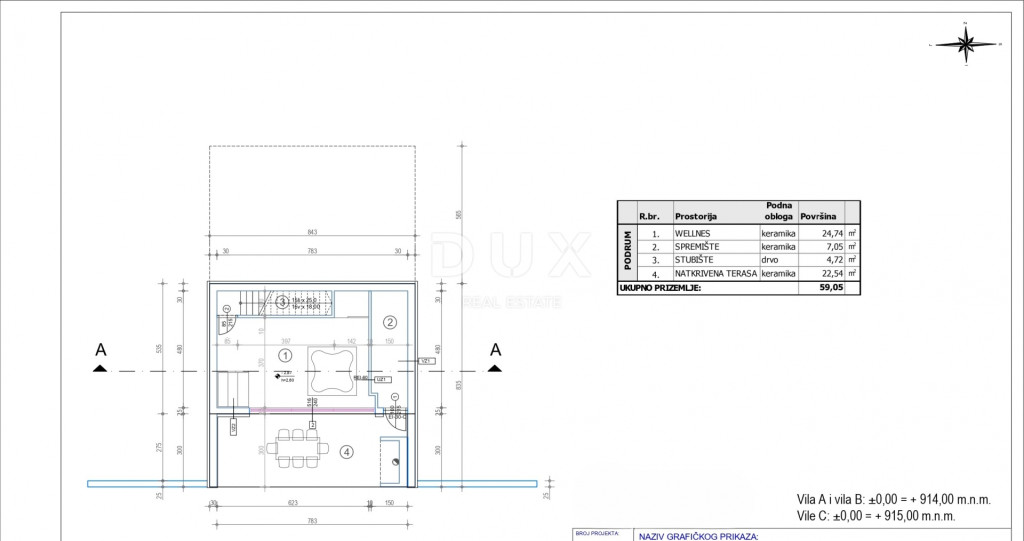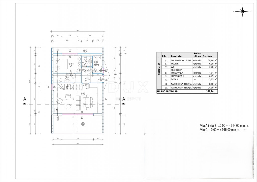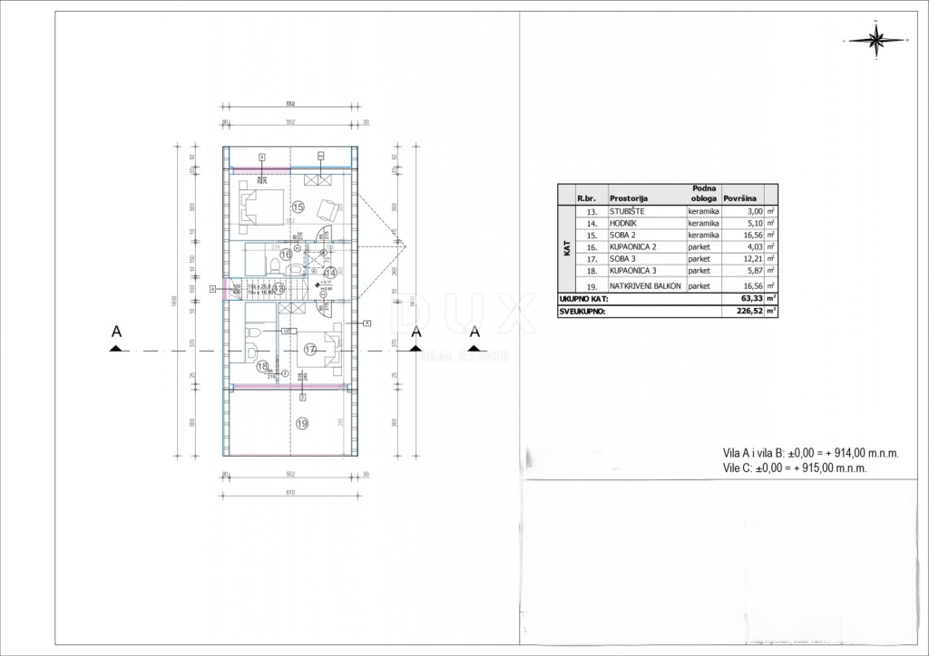 • Három villa (A, B, C) összesen 227 m2-es alapterülettel rendelkezik, egy villa (D) pedig 178 m2-es.