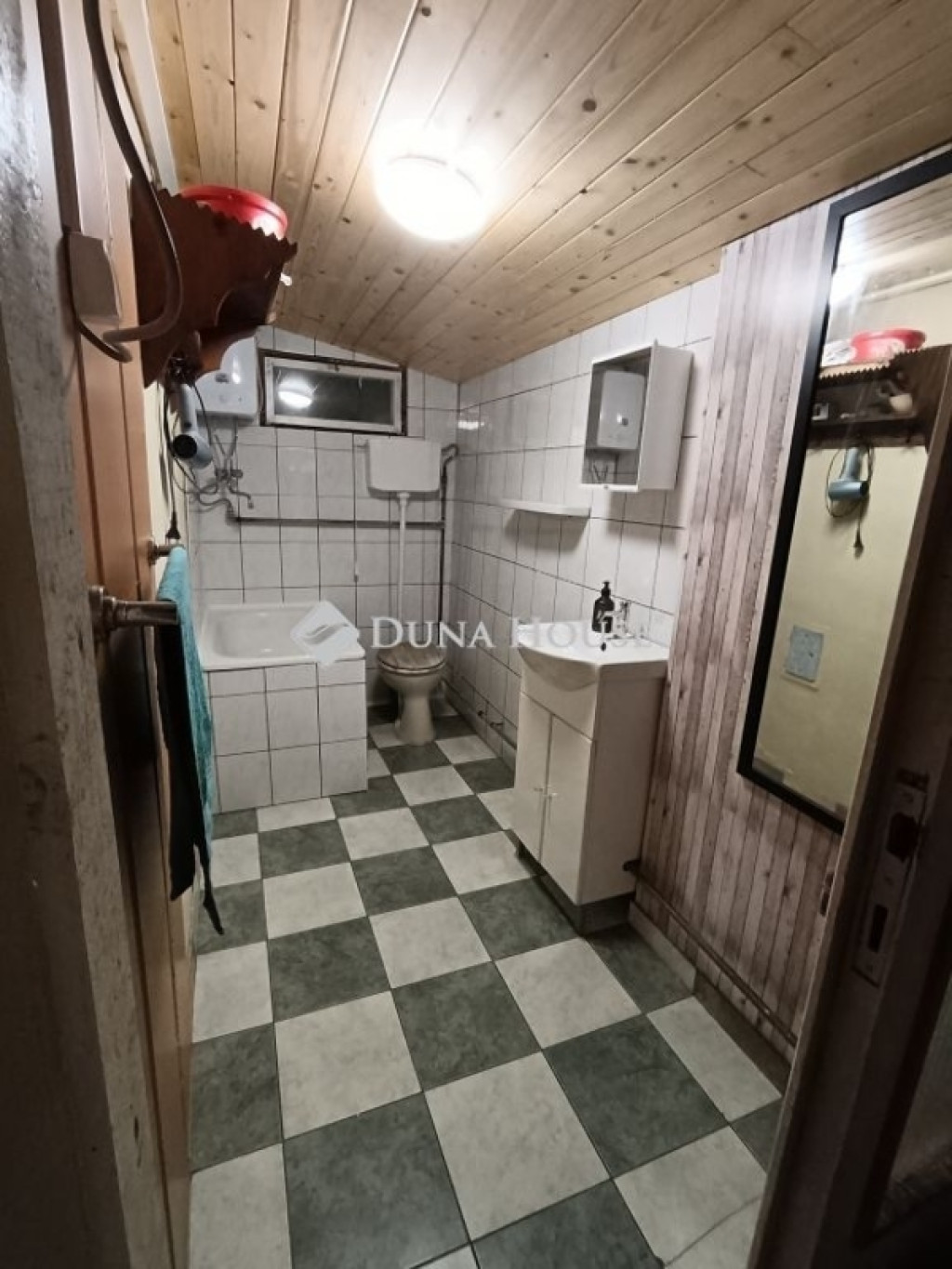 Fürdőben ülőkád tusolóval, melegvíz ellátásra egy 10L-es nyílt rendszerű villany bojler került beépítésre. Villany kb. 8000- ft/ hó.