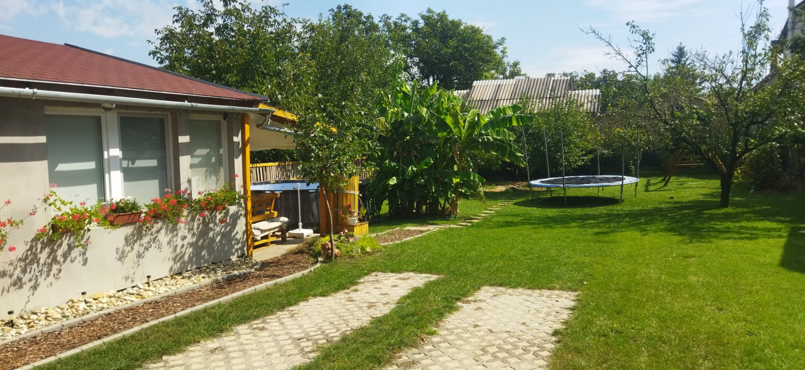 • Kocsi beálló, gondozott füves terület, több fiatal gyümölcsfa