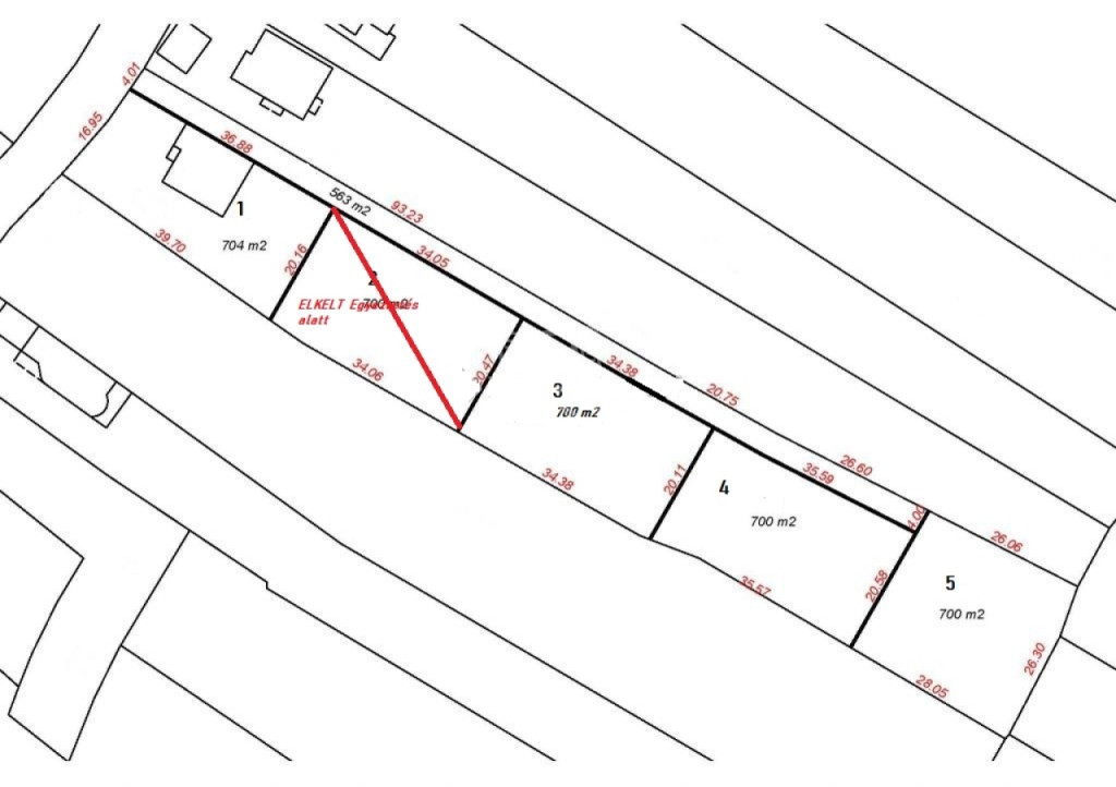 5 db egyenként 700 m2 –es építési telek + közös használatú úttal eladó!