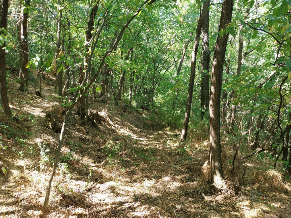 A felső telek mérete: 1978 nm, itt felépítmény nem található. (é. ö: Lk-1.4 /villás övezet/ --> szabadon álló, oldalhatáron álló, ikres, 60 %-os beépíthetőség, min. 20 % zöldfelület, legfeljebb 2 lakásos épület helyezhető el)