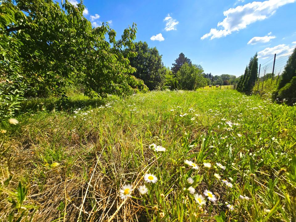 A telek körbekerített, rajta több termű gyümölcsfa található.