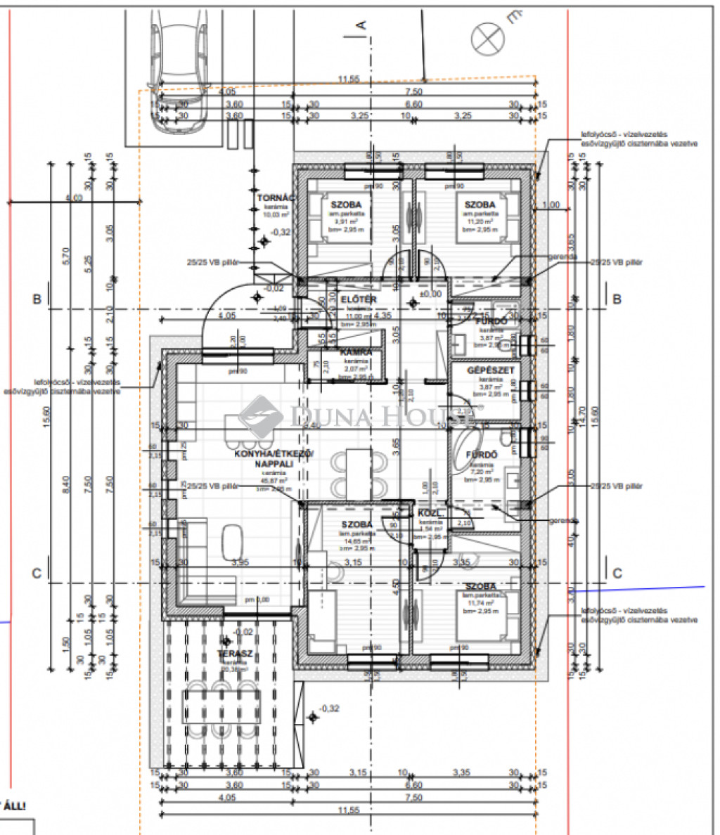 Egy 122nm-es egy szintes családi ház építési terveivel rendelkezik. Ezekkel együtt eladó. A családi ház megépítése opcionálisan megoldható.