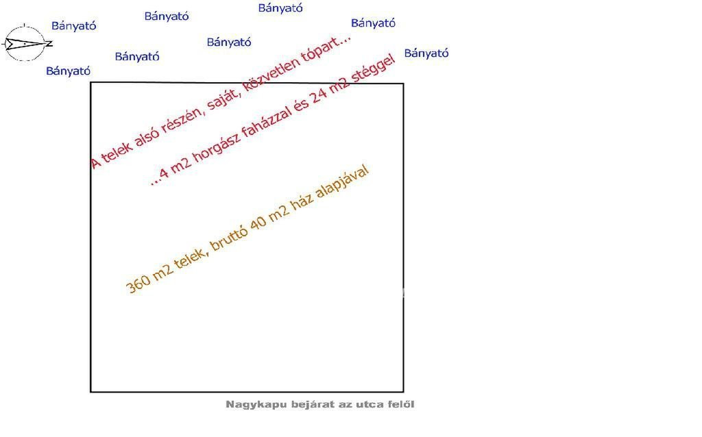 Ez a 360 nm-es osztatlan közös tulajdonban lévő telek közvetlenül a bányatavaknál található, a Flóra Virágpiac közelében. A területen egy 4 nm-es horgászház és egy 16 nm-es stég várja új tulajdonosát, valamint egy 40 nm-es beton alap is a rendelkezésre áll az építkezéshez.