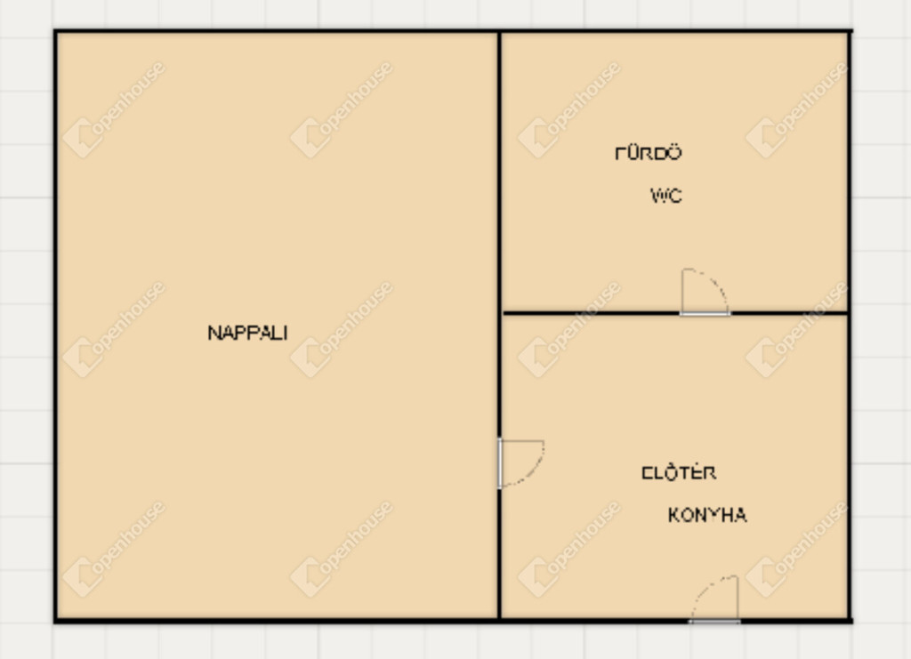 - földszint: előtér-konyha, fürdő, nappali illetve az emeletre felvezető lépcsőfeljáró