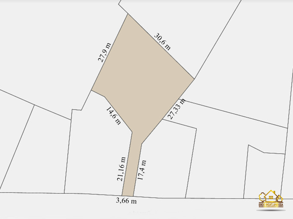 Eladó Tököl belvárosában egy 782 m²-es nyeles telek. Nyél szélessége 3,65 m.