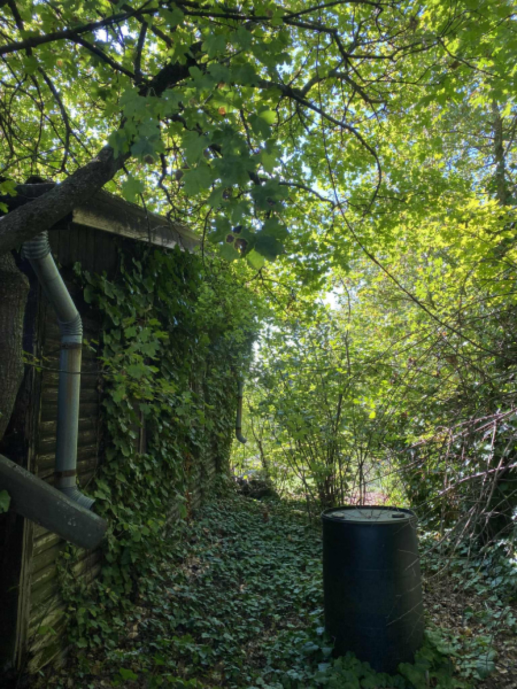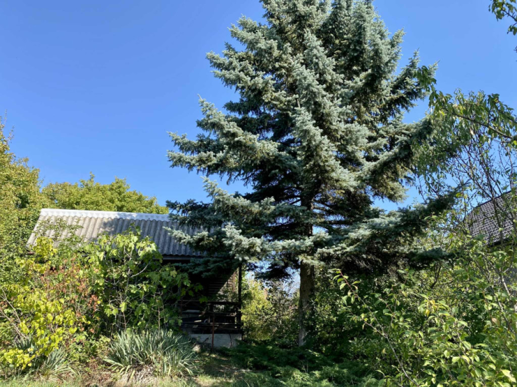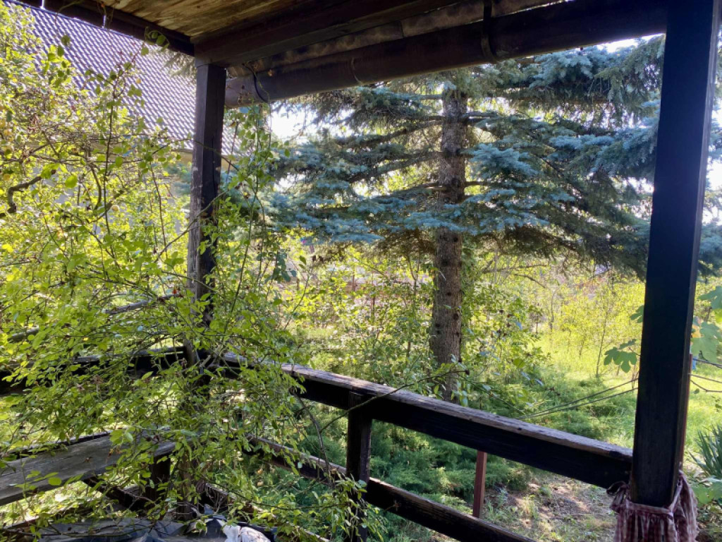 A telken egy kis fából épült víkendház van, ami egy szintes, ezért nem tudtam panorámát fotózni, viszont a második szinttől már messzire ellátni.