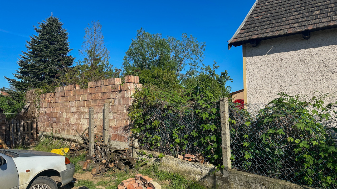 Felépítmény: 80 m²-es vályogház (bontandó)
