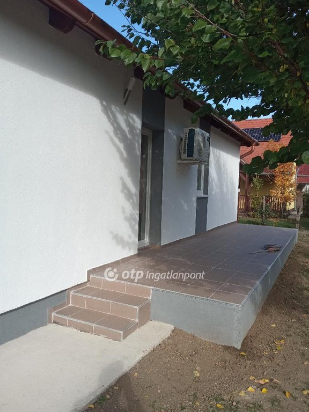 ABÁDSZALÓK ÜDÜLŐTERÜLETÉN, KIFEJEZETTEN NYUGODT, CSENDES UTCÁBAN, JÓ KÖRNYÉKEN, ELADÓ EGY 2025-BEN ÉPÜLT, ÚJ ÉPÍTÉSŰ NAPPALI+2 SZOBÁS, 62,42 M2-ES NYARALÓ!!! Az épület építése 2024-ben kezdődött, beton alappal, Leier 30-as téglafalazattal, 10 cm polisztirol hőszigeteléssel, duplaüveges műanyag ablakokkal, műanyag ajtókkal, födém fagerendás 15 cm gyapot hőszigeteléssel, tetőn betoncserép, kiváló minőségű padlóburkolatokkal (szobákban magas kopásállóságú laminált, nappaliban vízálló laminált). Az ingatlan még nincs teljesen kész, várható teljes befejezése: 2025.08.31., a homlokzat, a kocsi bejáró, járdák, és a teraszburkolás az ár részét képezi!!!
