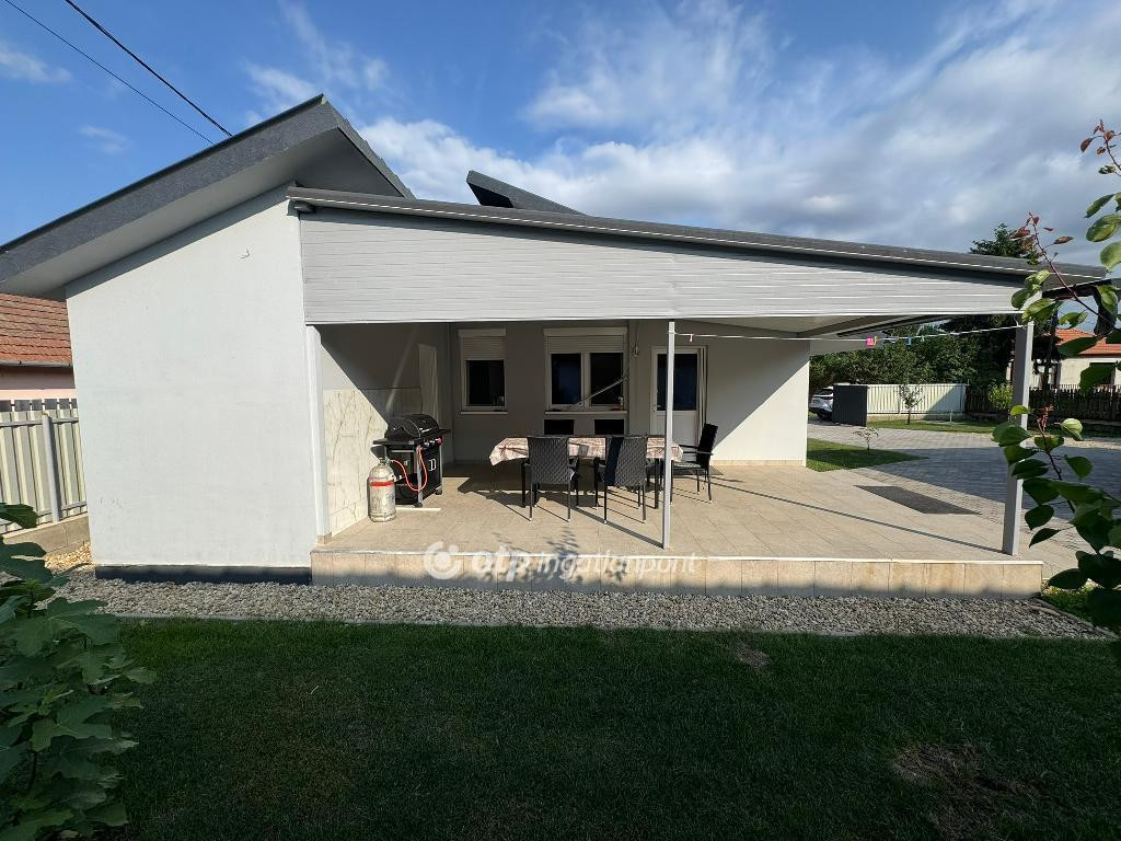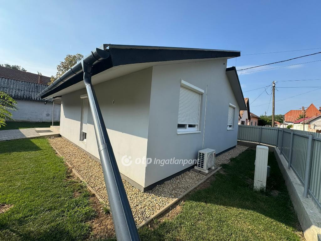 ABÁDSZALÓKON A TISZA-TÓHOZ KÖZEL, KIFEJEZETTEN NYUGODT, CSENDES UTCÁBAN, JÓ KÖRNYÉKEN, ELADÓ EGY BEN ÉPÜLT, ÚJ ÉPÍTÉSŰ NAPPALI+1+1 SZOBÁS, 72,29 M2-ES, KÖNNYŰSZERKEZETES NYARALÓ!!! A könnyűszerkezetes ház 2023-as terv szerint 2024-ben készült el, beton alappal (szendvicspanel), hőszivattyúval, szinte 0 Ft rezsivel!!! Udvara rendezett, füvesített, részben burkolt, rajta 23,9 m2 fedett terasz, 50 m2-es kétállásos lemezgarázs, fügebokor.