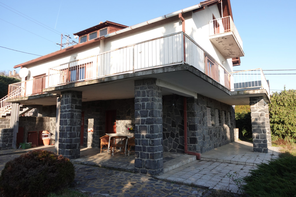 A két szintes, téglából épült, lakóház három külön bejáratú, szintenként 85 m2-es lakó résszel rendelkezik, melyek belülről zárható lépcsőházzal vannak összekötve, valamint az egész tetőtér beépíthető, mely egy külső lépcsőn keresztül érhető el. Az ALSÓ SZINTEN KÉT KÜLÖN BEJÁRATÚ LAKÓRÉSZ található. Az egyikben két nagy szoba és egy zuhanyzós fürdőszoba van. A másik lakórészben egy tágas nappali-étkező, egy konyha, zuhanyzó, egy HANGULATOS BOROS PINCE és egy méretes tároló van, mely szobaként is használható. Mindkét lakórész egy valóban NAGY MÉRETŰ, FEDETT TERASZHOZ kapcsolódik, ahonnan körülnézve valóban pompás balatoni- és a hegyre néző panorámában gyönyörködhetünk. A terasz KÖZVETLEN KERTKAPCSOLATOS, lépcső nélkül juthatunk az örökzöldekkel, cserjékkel, virágokkal beültetett kertbe.