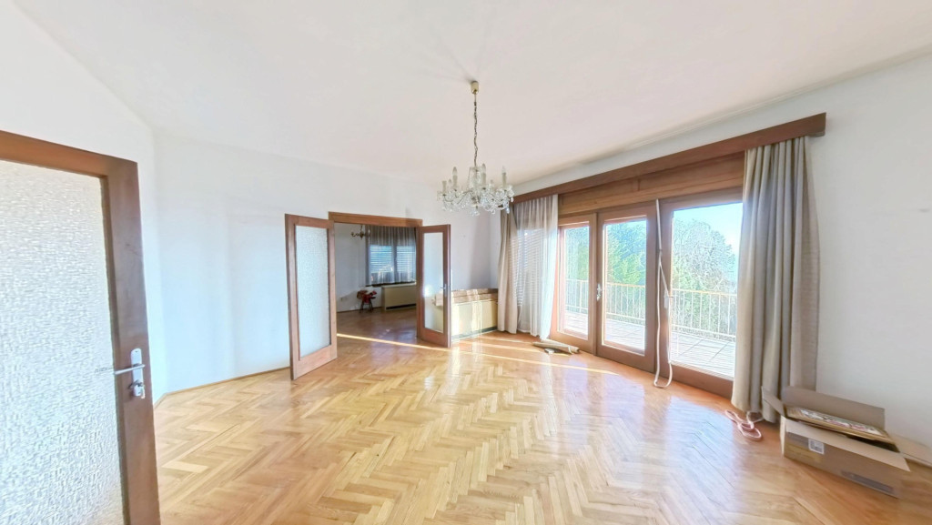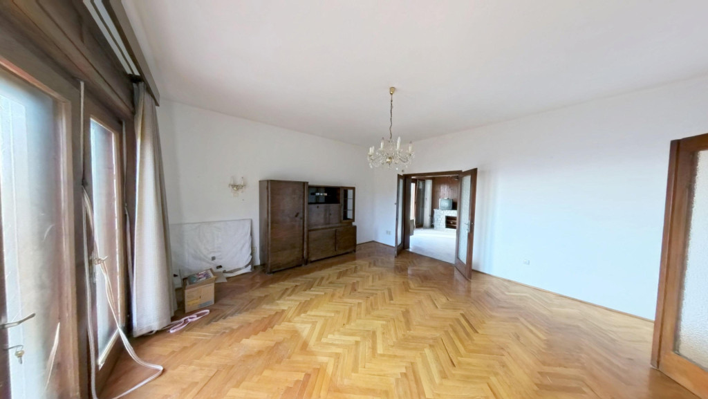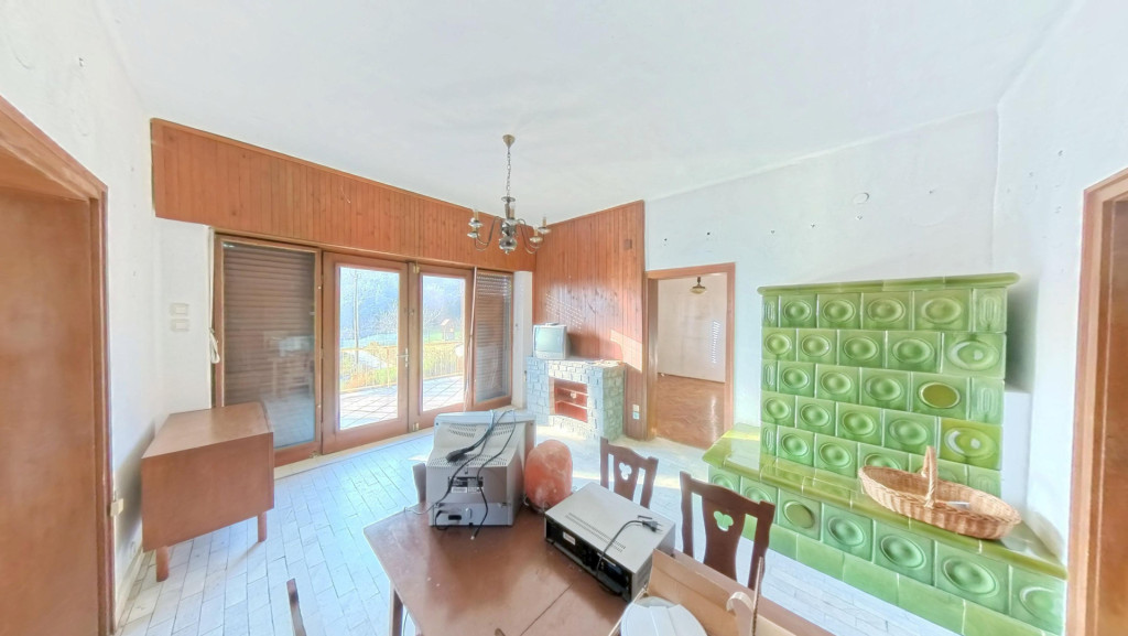 A hálóból egy IGAZÁN TÁGAS, VILÁGOS NAPPALIBA jutunk, melyből szintén közvetlenül léphetünk ki a már említett nagy erkélyre. A nappaliból az étkezőbe érkezünk, melyből nyílik egy jól bútorozható, tágas szoba. A LAKÓRÉSZ KÖRBEJÁRHATÓ, hiszen az étkezőből szintén a már említett kis előtérbe léphetünk. Az étkezőben egy szép CSERÉPKÁLYHA egészíti ki a fűtést. Az étkezőből szintén kiléphetünk a már említett tényleg nagy erkélyre, ahonnan egy lépcsőn keresztül a kertbe is lejuthatunk.