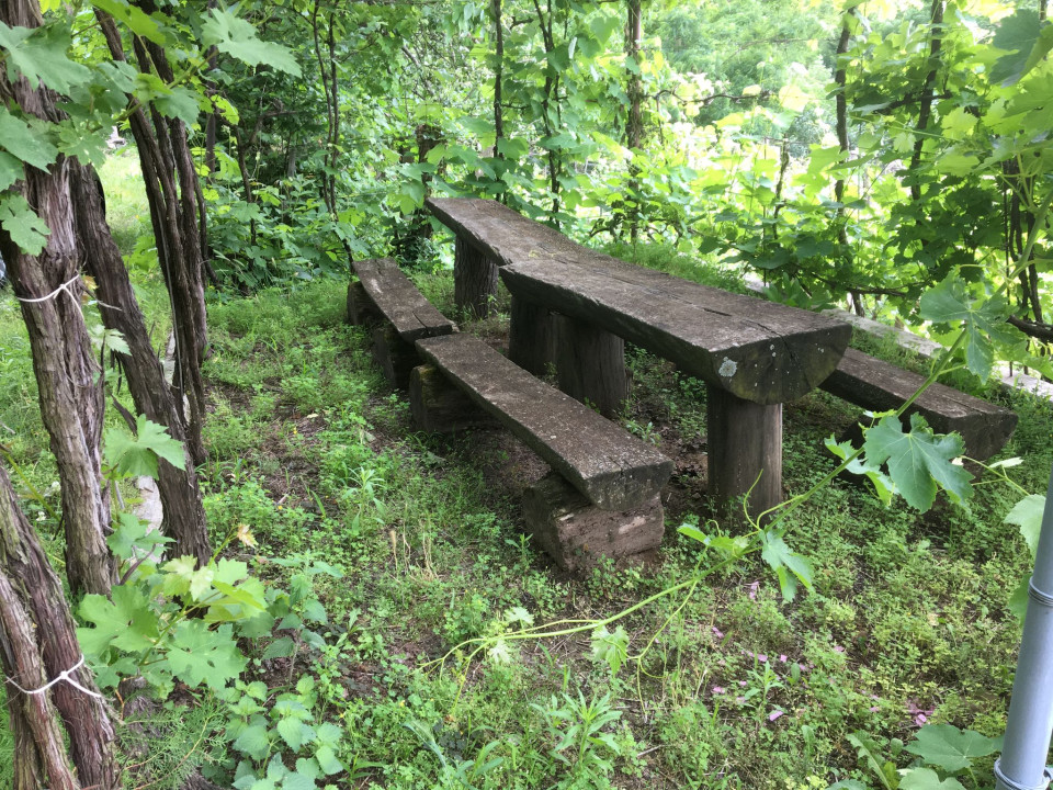 A telek nagysága 1345 m2, nincs bekerítve. A nyaraló előtt a telek füves, az előtte és a mögötte lévő terület szépen karbantartott, kordonos szőlővel van beültetve. Már az épület földszintjéről is csodálatos panoráma nyílik a Balatonra és a környékre, a távolban előtűnik a szigligeti vár.