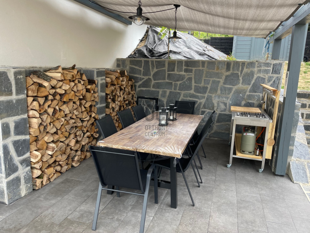 24 m2-es fedett terasz, igényes bútorzattal.