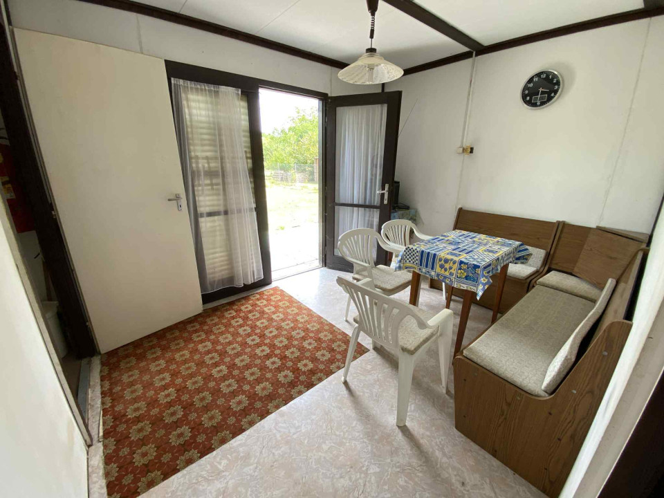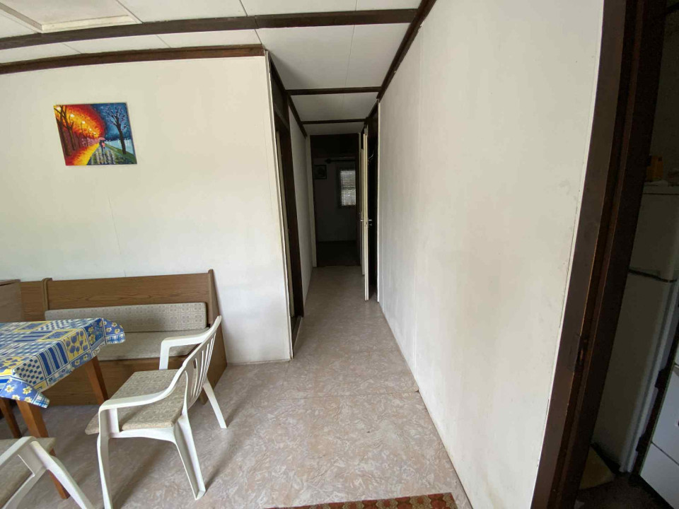 Eladó tulajdonostól csendes lakóövezetben található 40 m2 nyaraló 13 m2 terasszal. Az épület 1991-ben épült, a tulajdoni lapon nem szerepel, de a törvényi előírások alapján rávezethető. Kívül betonyp, belül forgácslap falazattal. A külső falakban 4 cm szigetelés van (könnyűszerkezetes). A terasz felújításra szorul. Épület alatt alacsony kis pince található (~15 nm). Víz, csatorna, villany (1x20 Amper) bevezetve, gáz utcában. Melegvizet villanybojler szolgáltatja, az épületben életvédelmi relé (Fí relé) utólag beépítve. Igény szerint bútorokkal együtt eladó. Étkező aljzat linóleum, a szobákban padlószőnyeg borítás van, konyha és vizes helyiségek járólap burkolatúak. Az épület alapozása vasalt beton sávalap.