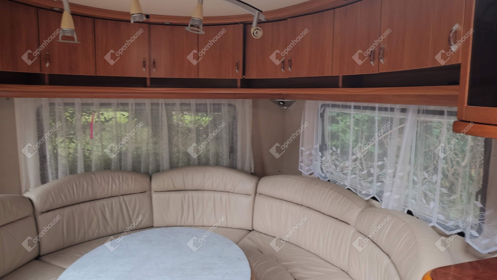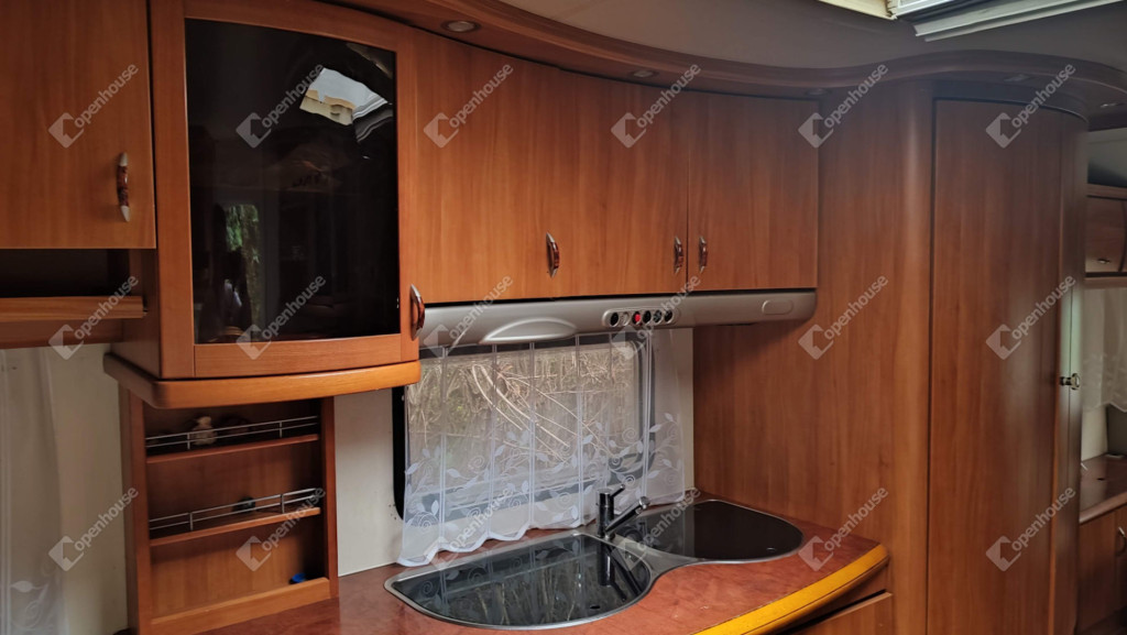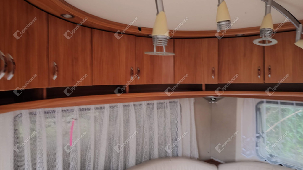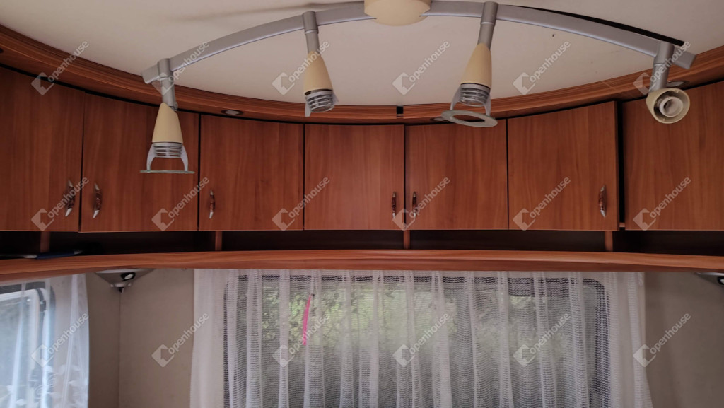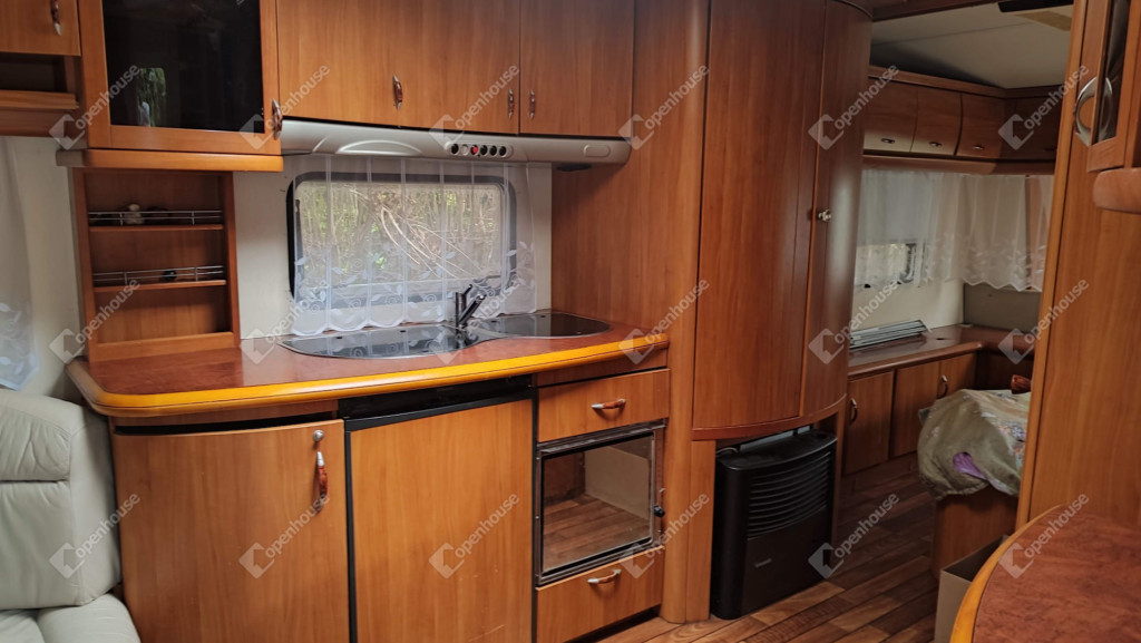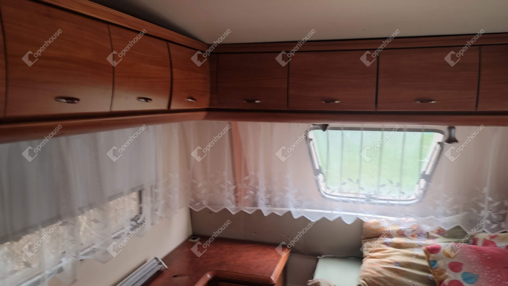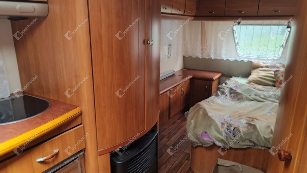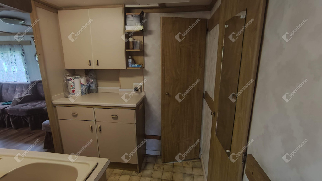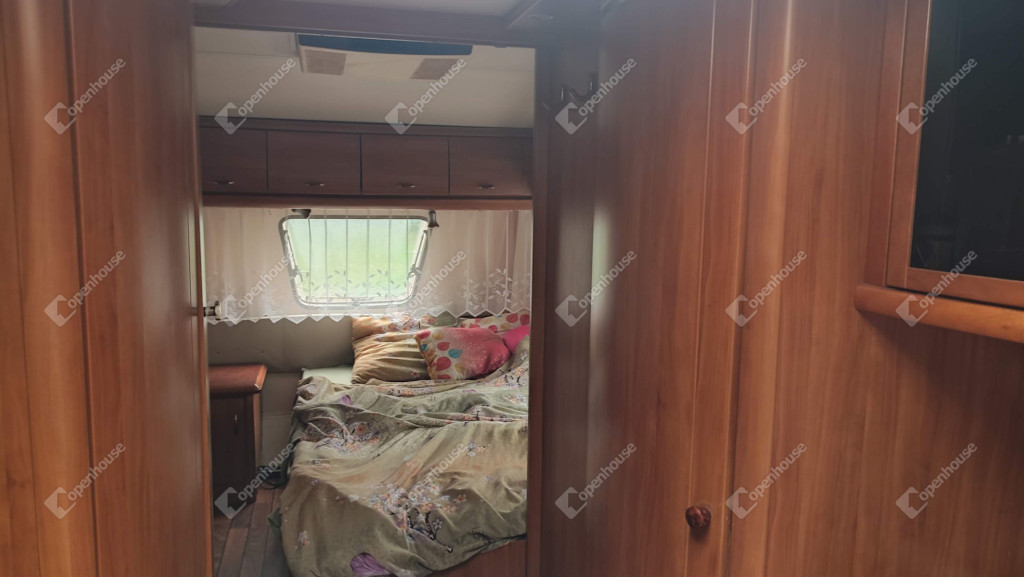 A rajta lévő szendvicspaneles, szigetelt épület 27-négyzetméteres. Egy szobát ,nappalit, konyhát, fürdőszobát valamint nagyméretű kiülős fedett teraszt foglal magába. Fűtéséröl infrapanel gondoskodik így egész évben használható a ház. Nyílászárók szintén szigeteltek. Udvara parkosított , ahol kőből épített szalonnázó-grillező is helyet kapott. Különálló igényes, fából készült szerszám tároló a ház mögött. Valamint egy Hobby típusú minden igényt kielégítő lakókocsi extra belsővel. Ha több helyre lenne szükség.