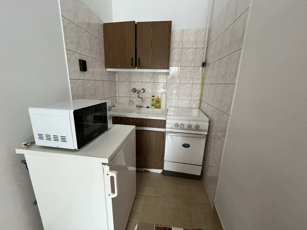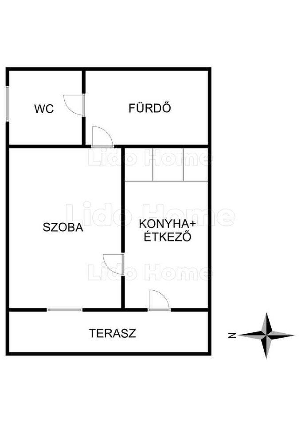 -A 22 m2-es apartman helyiségkiosztása: -konyha, szoba, fürdőszoba.