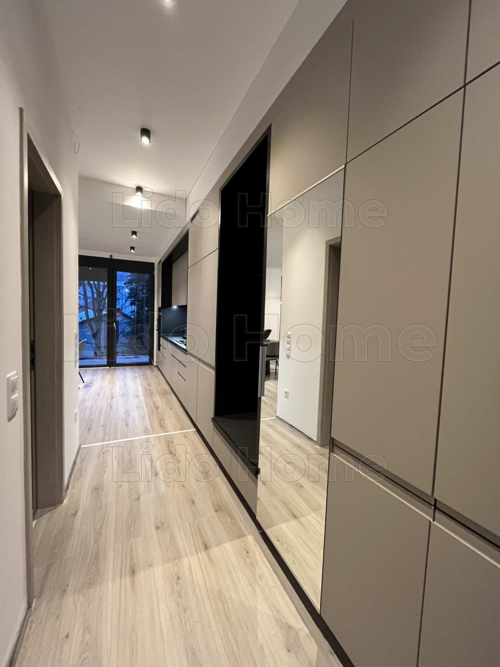 -Az előtér beépített szekrényrendszerrel, tároló elemekkel felszerelve praktikus használati funkciót biztosít a bent élőknek, a konyhabútorral megegyező típus és színválasztás kihangsúlyozza a lakás egységét.