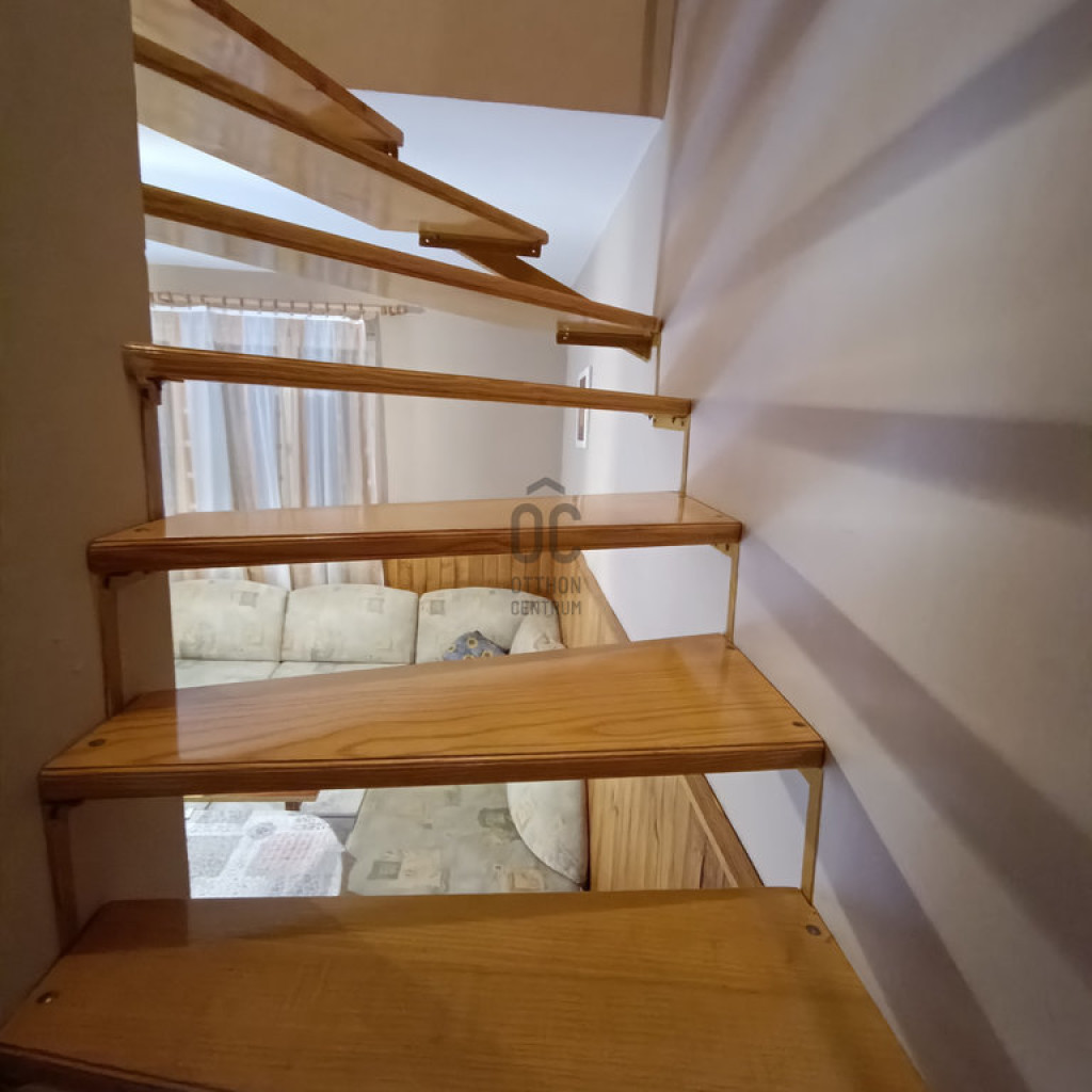 -a hátsó udvari ház: 30 m2 nagyságú: konyha-étkező-nappali, mosdó-WC került kialakításra, felső szinten hálószobával