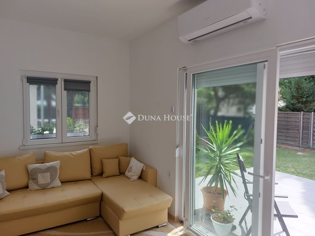 Balatonfenyvesen a központhoz, és a vízparthoz egyaránt közeli elhelyezkedésű, 536 nm-es telken felépült, modern, könnyűszerkezetes, ikerház melynek a fele most eladó!Az épület társasházként van nyilvántartva, benne kettő lakás, melyeknek külön helyrajzi száma van, a társasházi alapító okiratban a tulajdonosok lefektették a tulajdoni, és a használati jogviszonyokat is.Az épület könnyűszerkezetes, a tető héjazata cserép, falazata10 cm-es hőszigetelést kapott, hang és hőszigetelt nyílászárókkal, szúnyoghálóval és redőnnyel felszereltek.A házban a gáz kivételével minden közmű megtalálható, a villanynál H tarifa is ki lett építve, erről működtethető a fűtés, ADAX fűtőpanelekkel. Nyáron hűtő-fűtő klíma segít a kellemes hőmérséklet beállításában.A két hálószobában, a nappaliban, étkezőben, konyhában, fürdőben, wc-ben is modern, méretre gyártott, kényelmes bútorok vannak, amik a vételár részét képezik, így az ingatlan azonnal birtokba vehető. A 20 nm-es terasz, melyet a parkosított kert vesz kőrbe, a nyári napokon helyet adhat a kerti partik, családi összejövetelek helyszínének.Az udvaron több autó parkolására van lehetőség, egy hat négyzetméteres tároló is az itt lakók kényelmét szolgálja.A megtekintéshez időpont egyeztetés szükséges.Amennyiben felkeltettem érdeklődését, várom megtisztelő hívását.