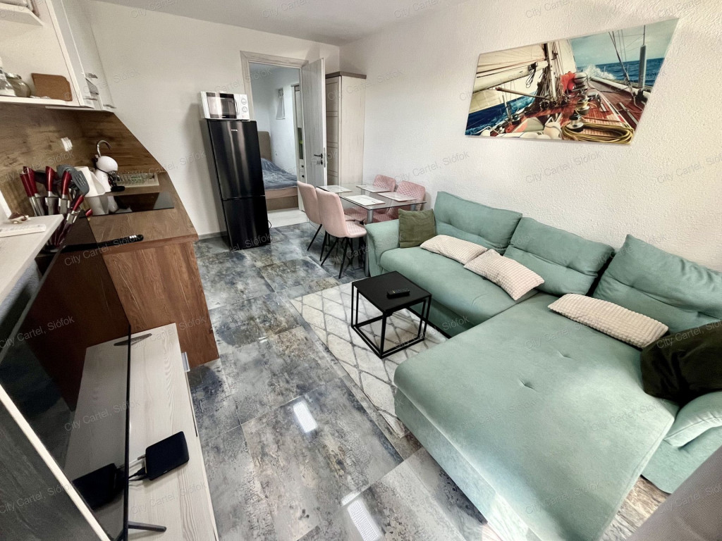 Az ingatlanban amerikai konyhás nappali, külön hálószoba, valamint zuhanyzós fürdőszoba – WC található. A nappaliból egy beépített, téliesített, 10 m²-es teraszra léphetünk, amely egész évben kellemes pihenőhelyet biztosít. A lakás hűtésre és fűtésre egyaránt alkalmas klímával felszerelt, így akár télen is kényelmesen használható és a nyári meleg sem okozhat problémát.